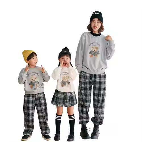 Custom Kids Clothing Mommy and Me Clothing Set Family Matching Clothes Long Sleeve Sweatshirt and Plaid Pants Skirt Outfits