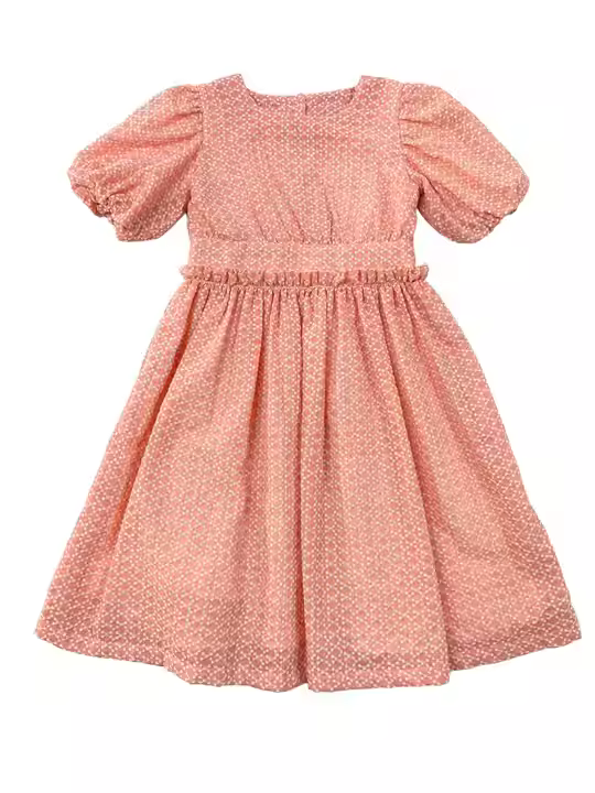 Custom Peach Flower Embroidery Mom and Daughter Matching Family Outfits Dress Ballon Sleeve Family Matching Outfits Dress