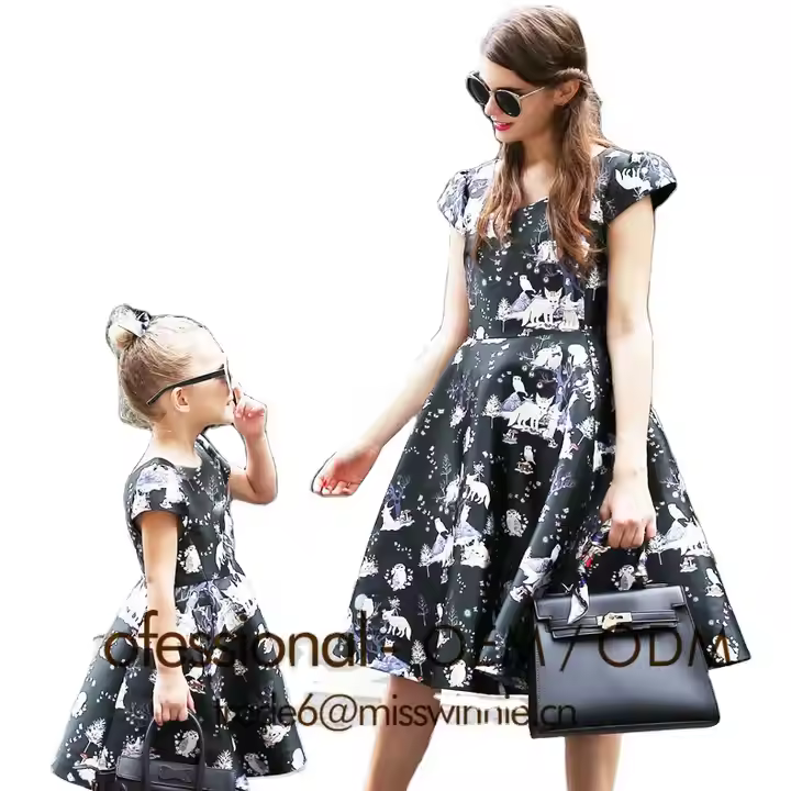 OEM Custom Made Fashion Mother and Daughter Cotton Printing Dress Girls Dress Children Clothing