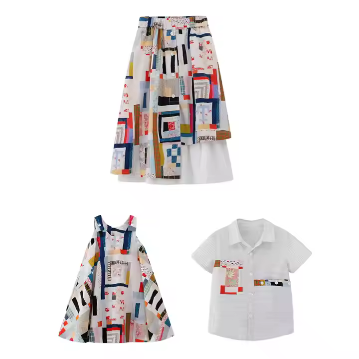 Brother Sister Casual Cotton Clothing Set Custom Floral Design by Gaoteng Manufacturing Shirt and Dress