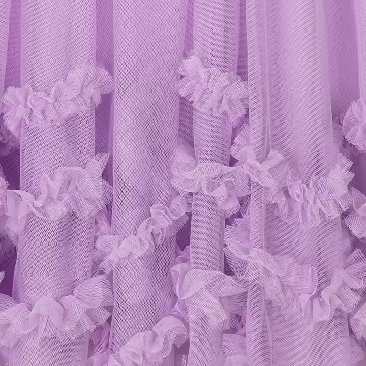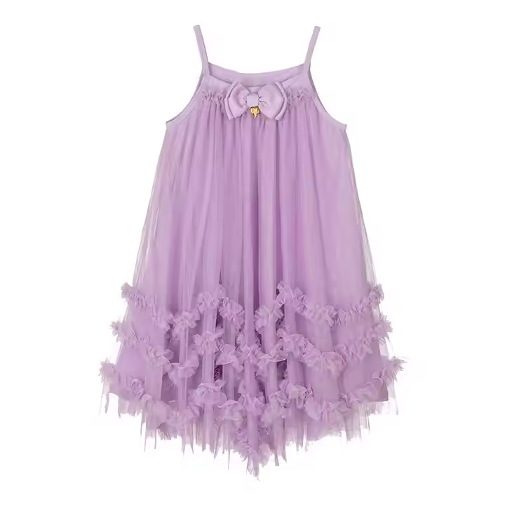 Factory Price Children Purple Prom Dress for 4-12 Year Old Girl Spaghetti Straps Ruffle Tulle Dress Kids Party Dresses 2024