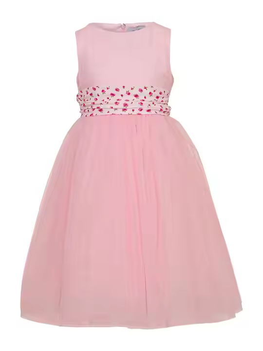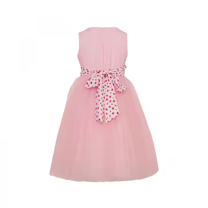Simple Style Princess Tulle Dress Floral Belt Bowknot Gown Pink Party Dresses for Children Birthday Girls 8-15 Years