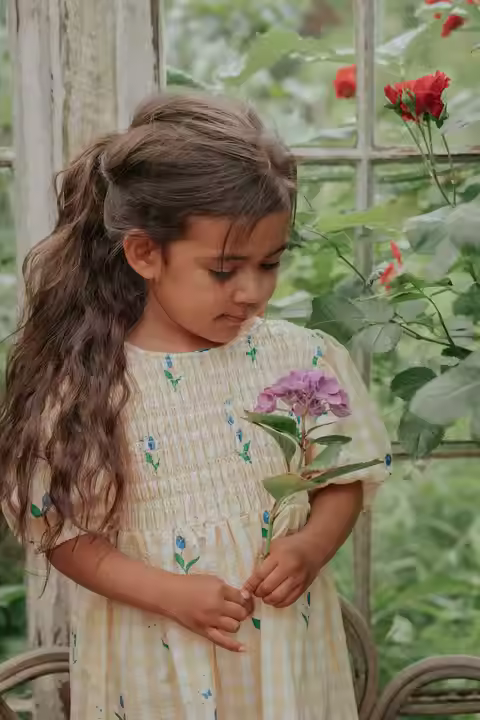 /Casual Style Short Sleeve Seersucker Cotton with Floral Print Smocking Dress for Kids Girls Summer Dress