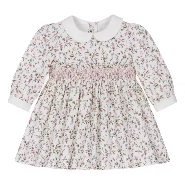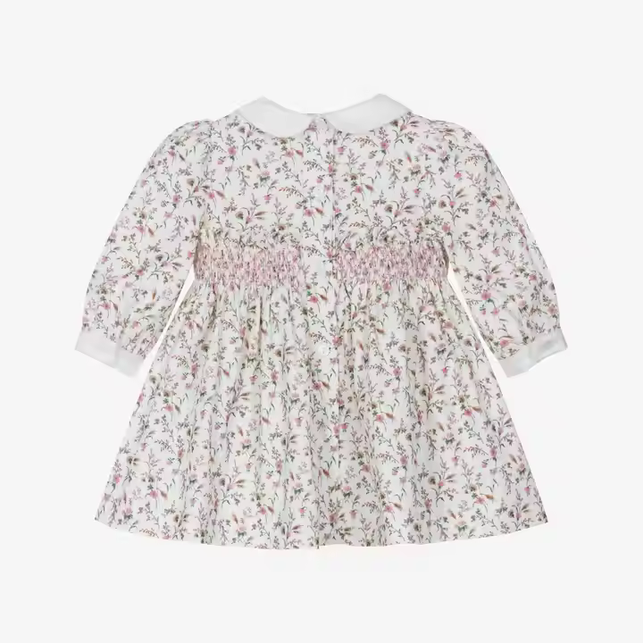 OEM & ODM Baby Toddler Clothes Floral Cotton Smocked Dress Button Closure Girls Dress