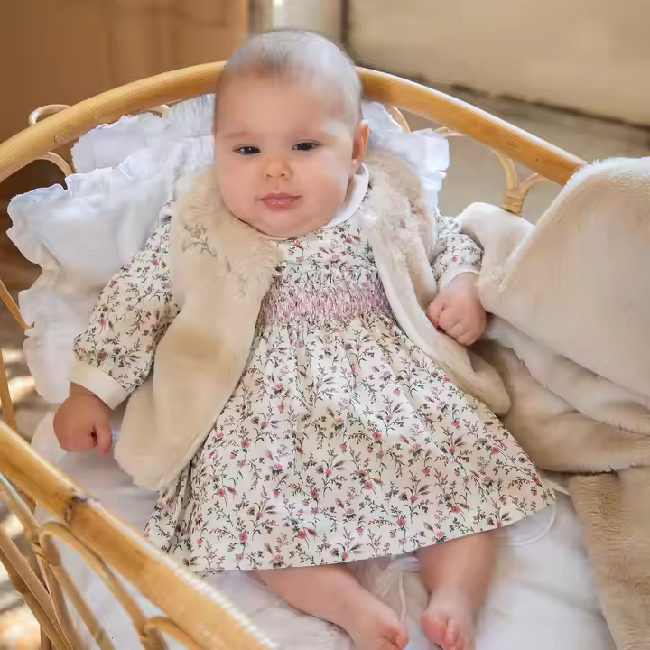 /OEM & ODM Baby Toddler Clothes Floral Cotton Smocked Dress Button Closure Girls Dress
