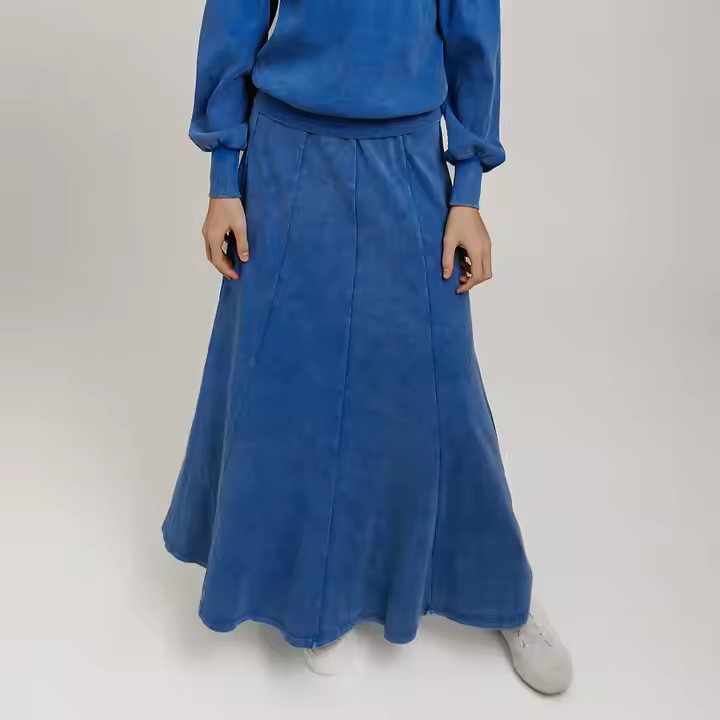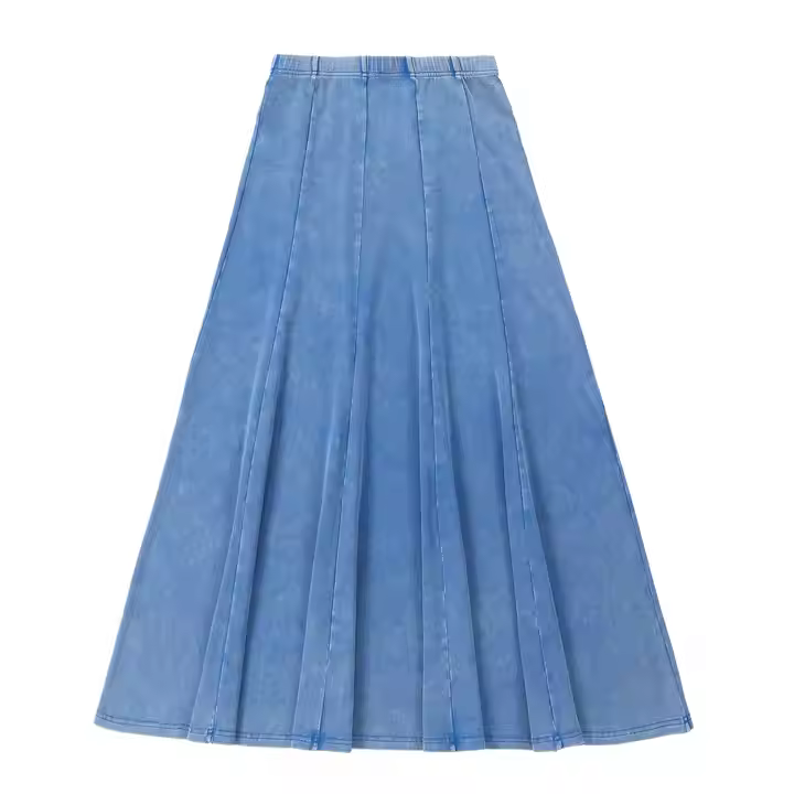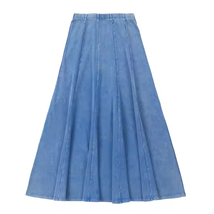 Custom Denim Blue Acid Wash Jersey Cotton Maxi Skirt for Teens Private Label with Elastic Waist Band for Children