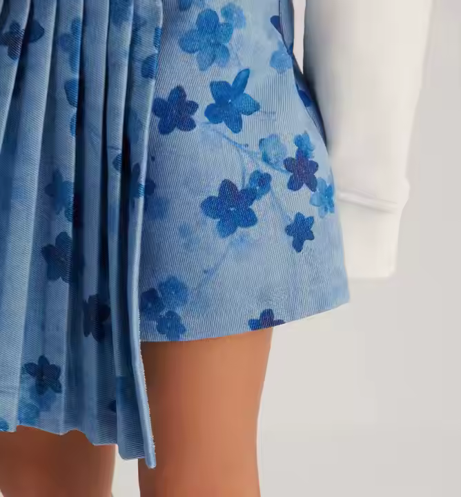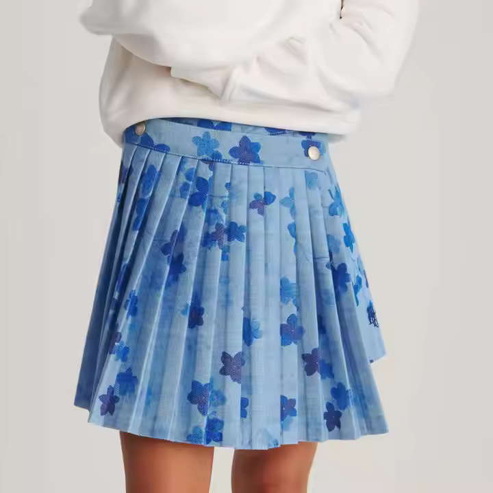 Girls Summer Pleated Skirt Custom Allover Ink Print Pattern Fashion Kids Child Short Skirt Manufactured with Cotton Blend