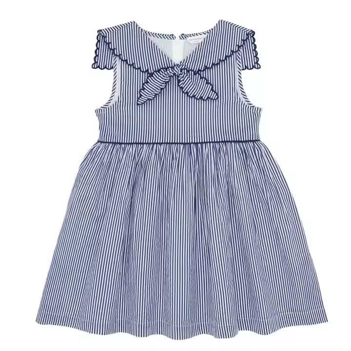 Fashionable New Best-selling Striped Girls' Dress Blue and White Long Skirt OEM 30-year Wholesale Children's Clothing Factory