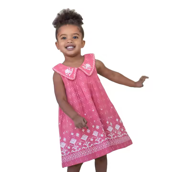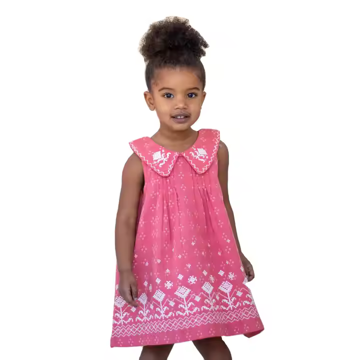 Fashion Style Guangzhou Manufacturer High Quality Sleeveless Cotton Embroidery Dress Girls Clothes Summer
