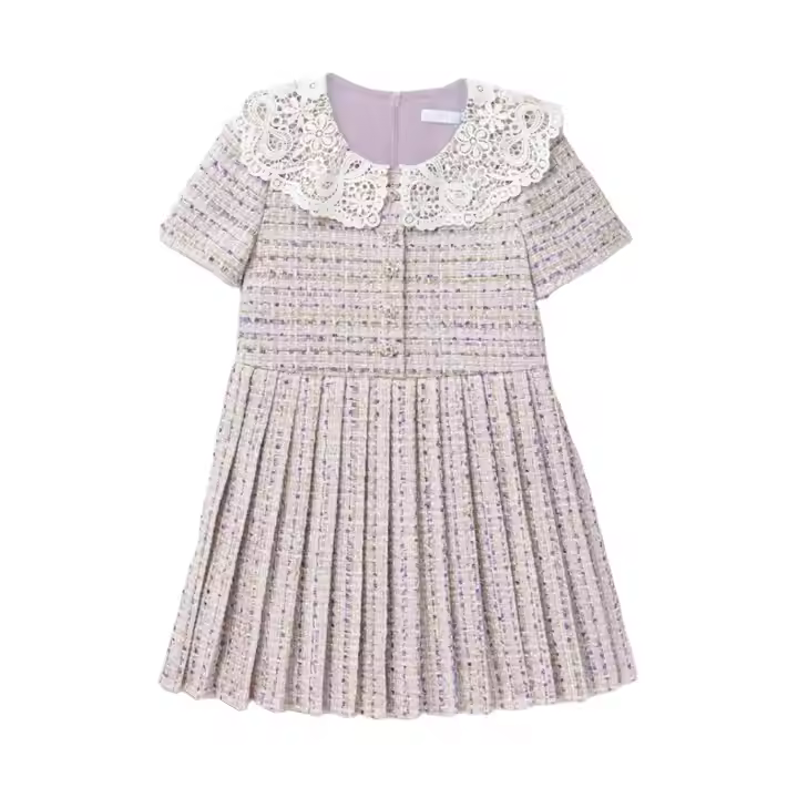 /Wholesale Elegant A-Line Dot Pattern Girls Dresses Summer Crocheted O-Neck Sleeveless Youth Dress for Children