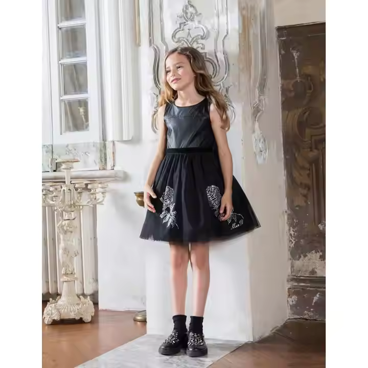Customized Brand Fashion Sequin Tutu and Pu Leather Dress for Girls