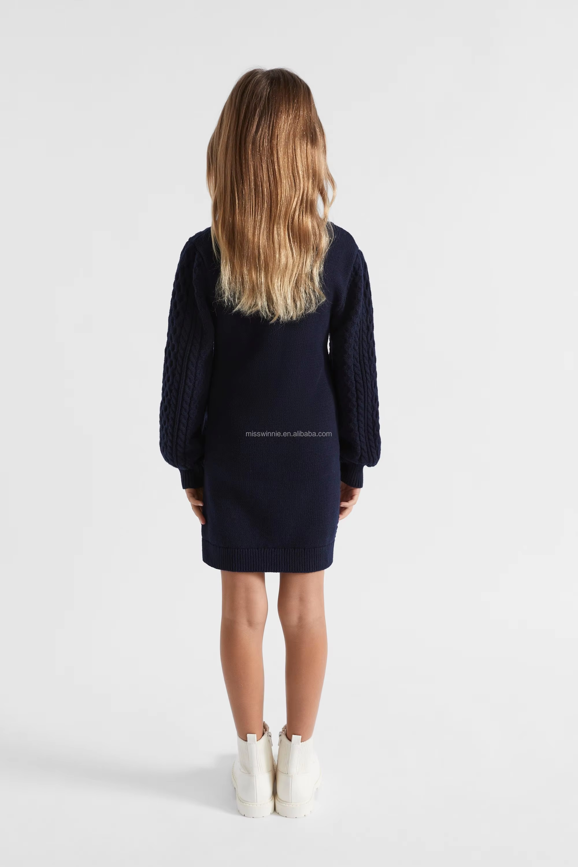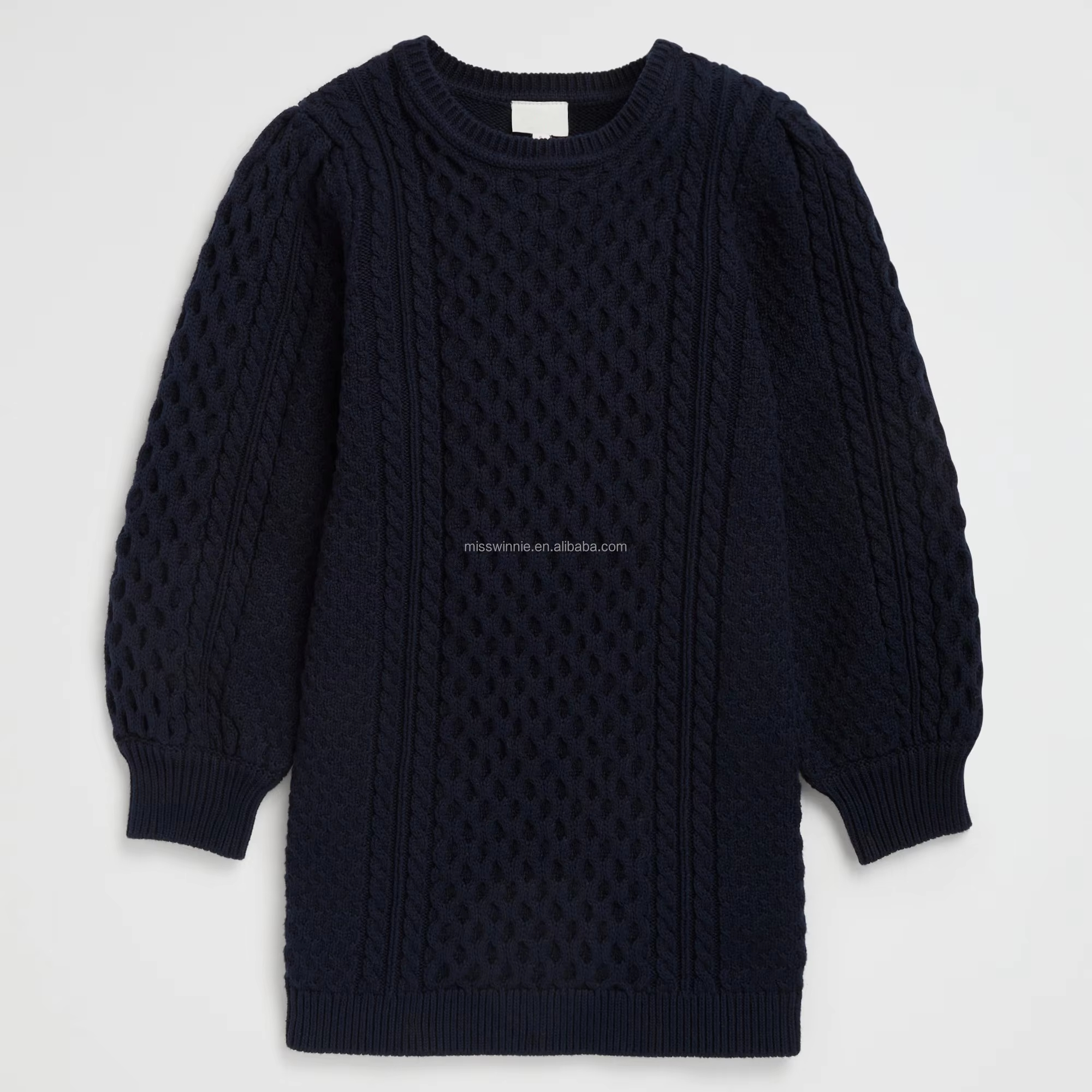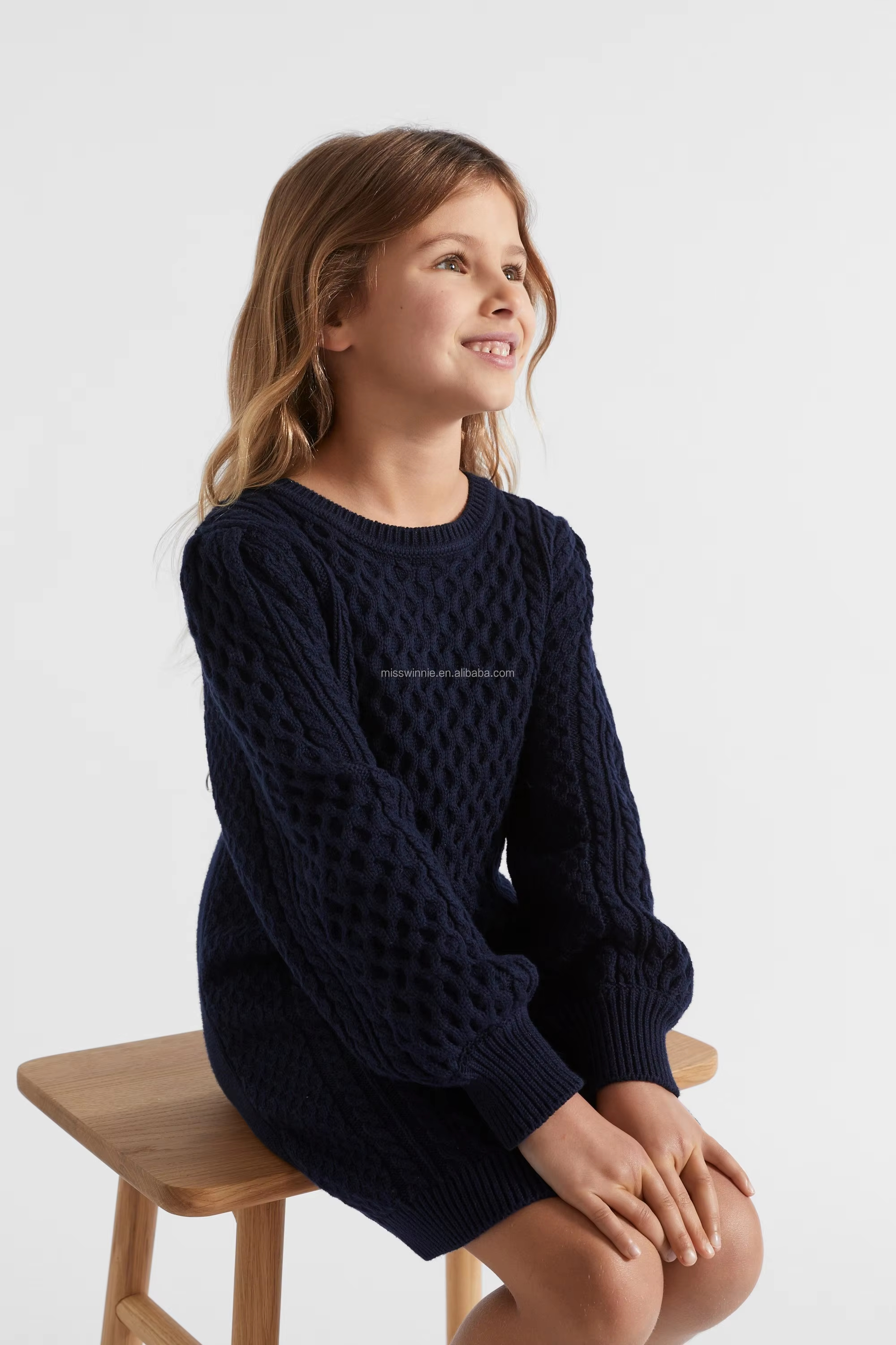 /Children's Casual Straight Style Mini Dress Girls' Chunky Knit Jersey Sweater with O-Neck Solid Pattern ODM Supply