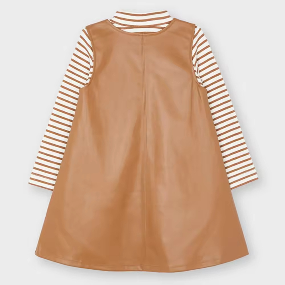 /Custom Fashion O-Neck Leather Slip Dress for Girls Spring Boutique Toddler Baby Girl Skirt Factory Price Direct ODM Supply