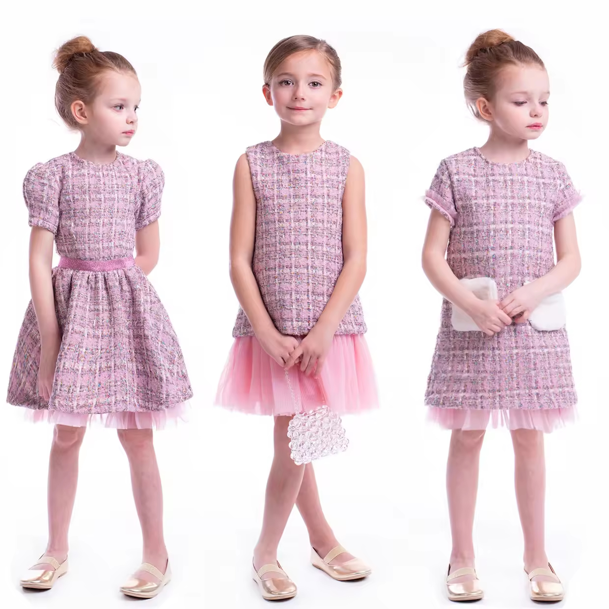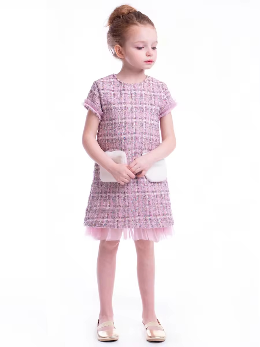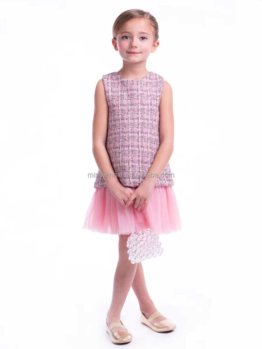 2024 Custom Collection Winter Casual A-Line Tweed Dress With Tutu for Children and Kids Girl Dresses