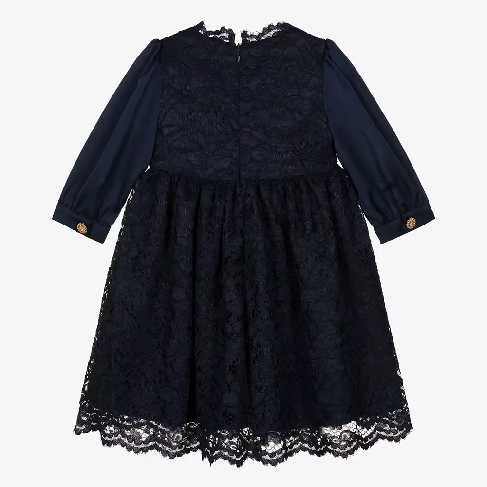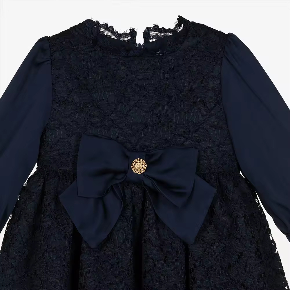 /2025 High Quality Black Lace Children Girl Dress With Bow in Spring Autumn for Party Custom New Arrival Kids Clothing Factory