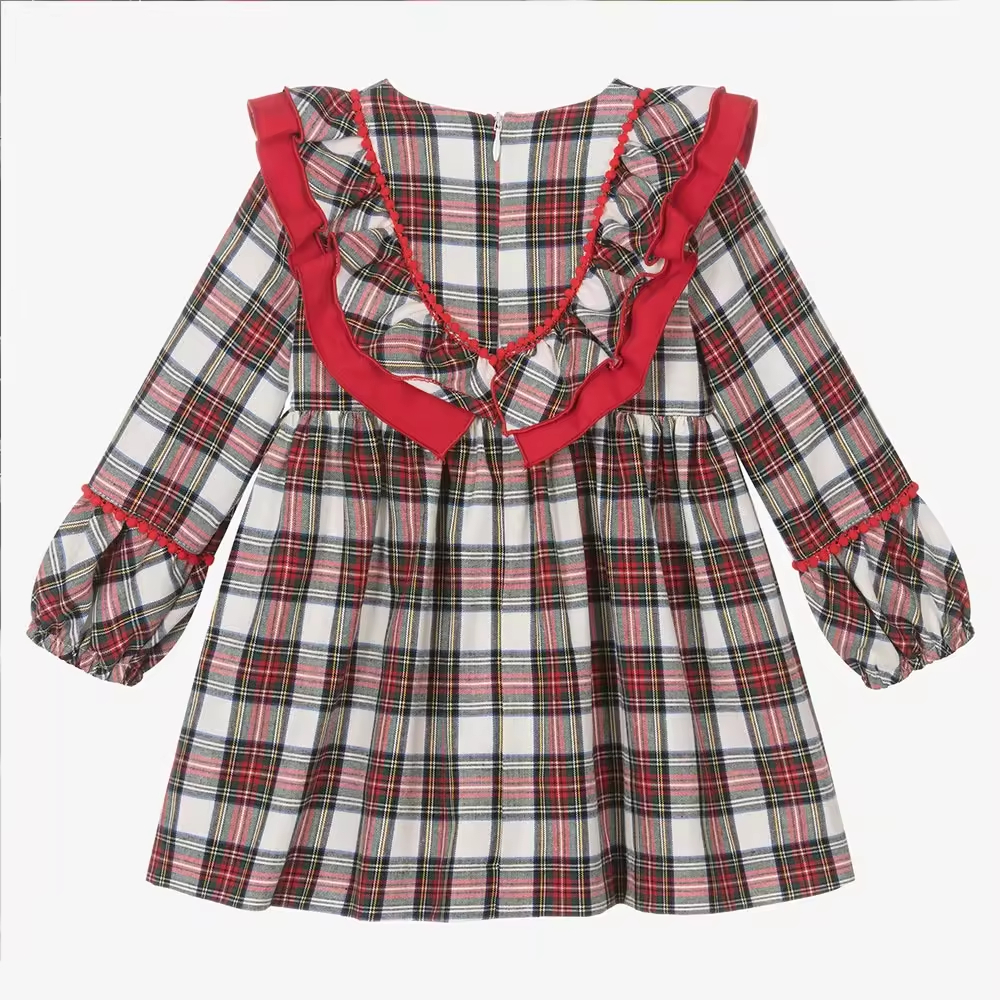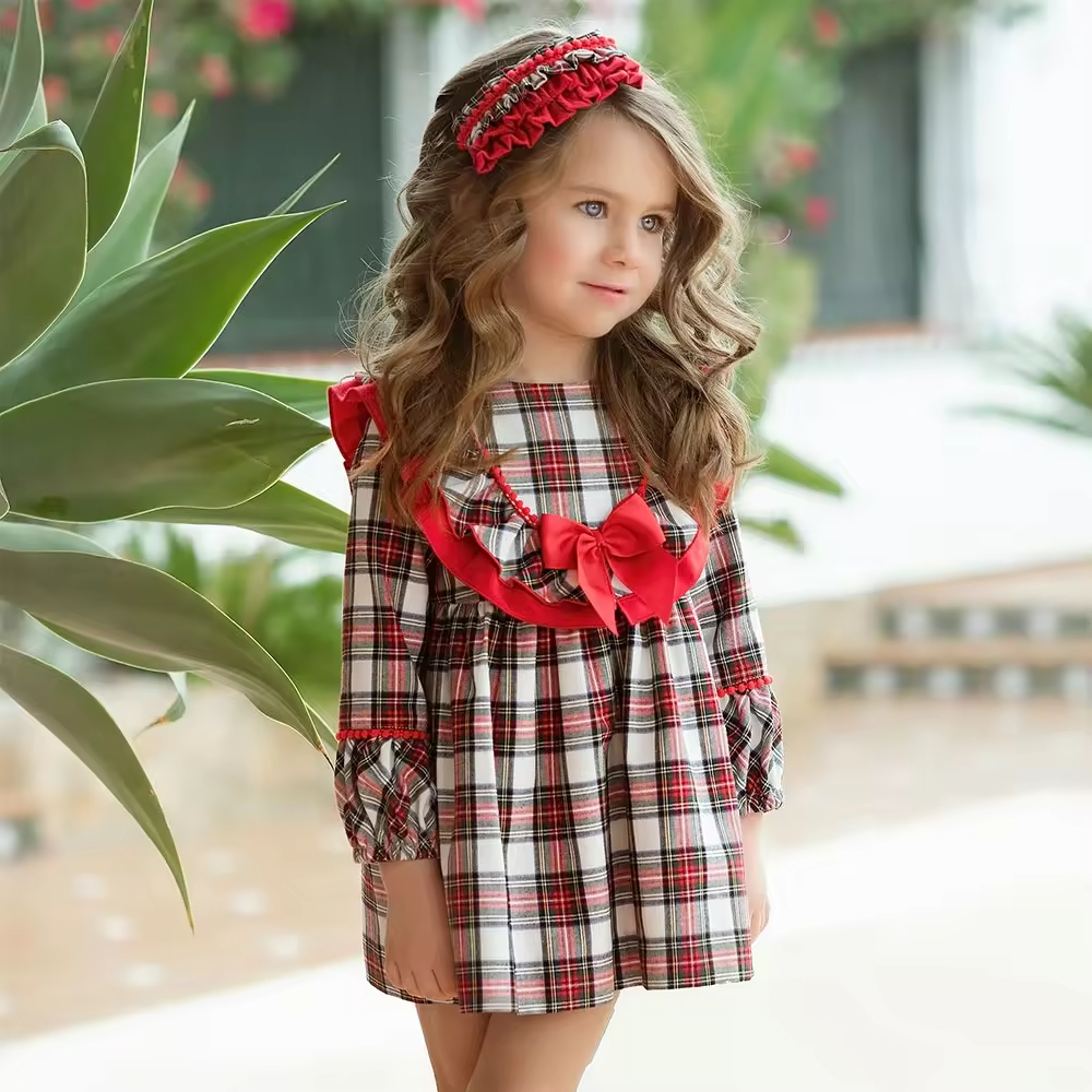 2025 Hot Sell Plaid Girls Dress With Bow in Spring Oem Odm High Quality School Uniform Kids Clothing for Children