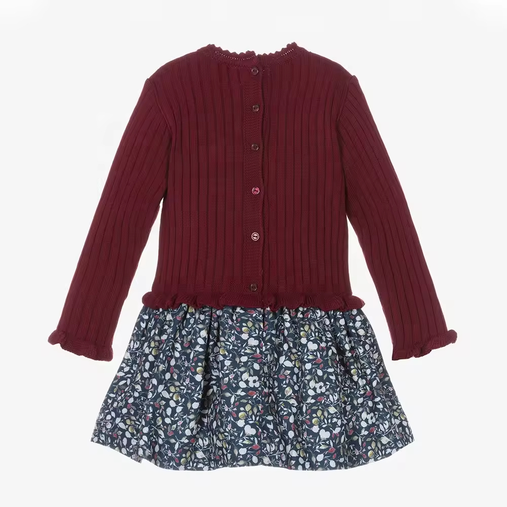 2025 Casual Hot Sell Winter Kids Frock Girls Dress With Print Flower Oem Odm High Quality Red Fashionable Children Clothing