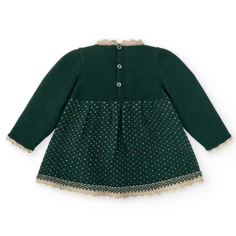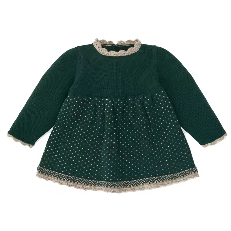 Newest Fashion Knit Wear Design Premium Cotton Jacquard Heart Forest Knit Baby Girl Dress