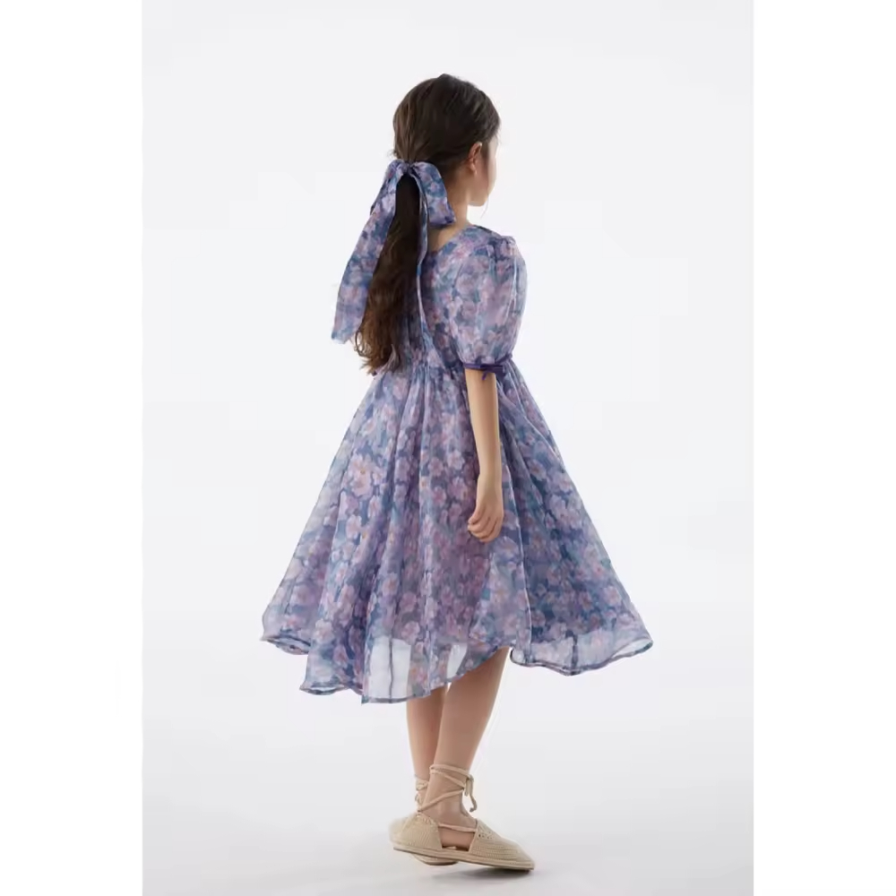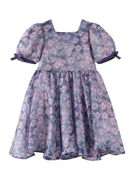 Children's Girls' Dress Short-sleeved Fold Bow Tie Winter School Style