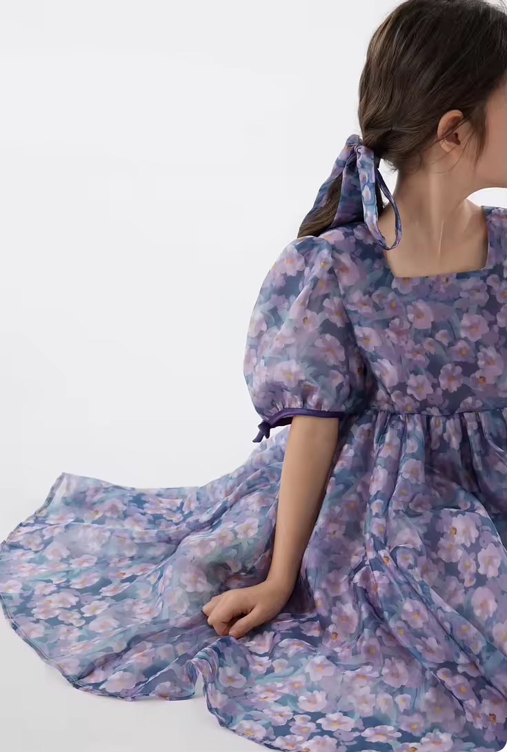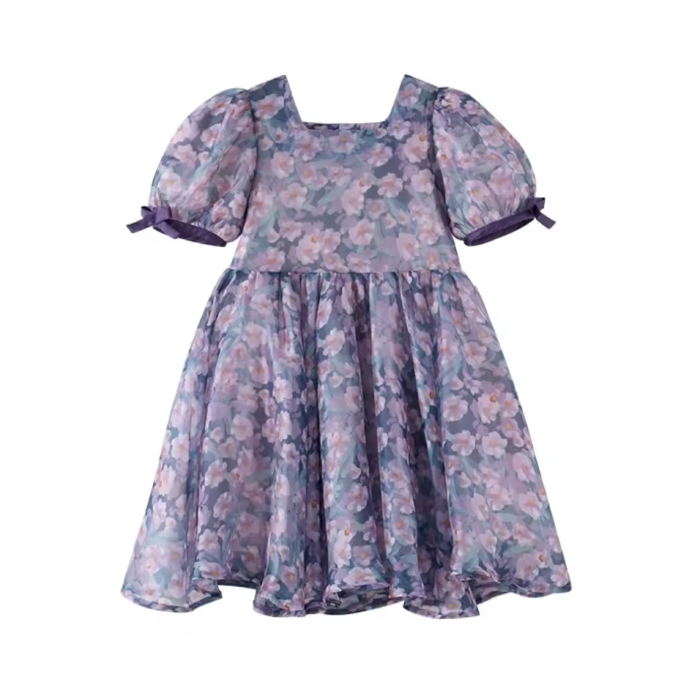 Individual dress style Customized children clothes fancy printing Ruffle girls dress