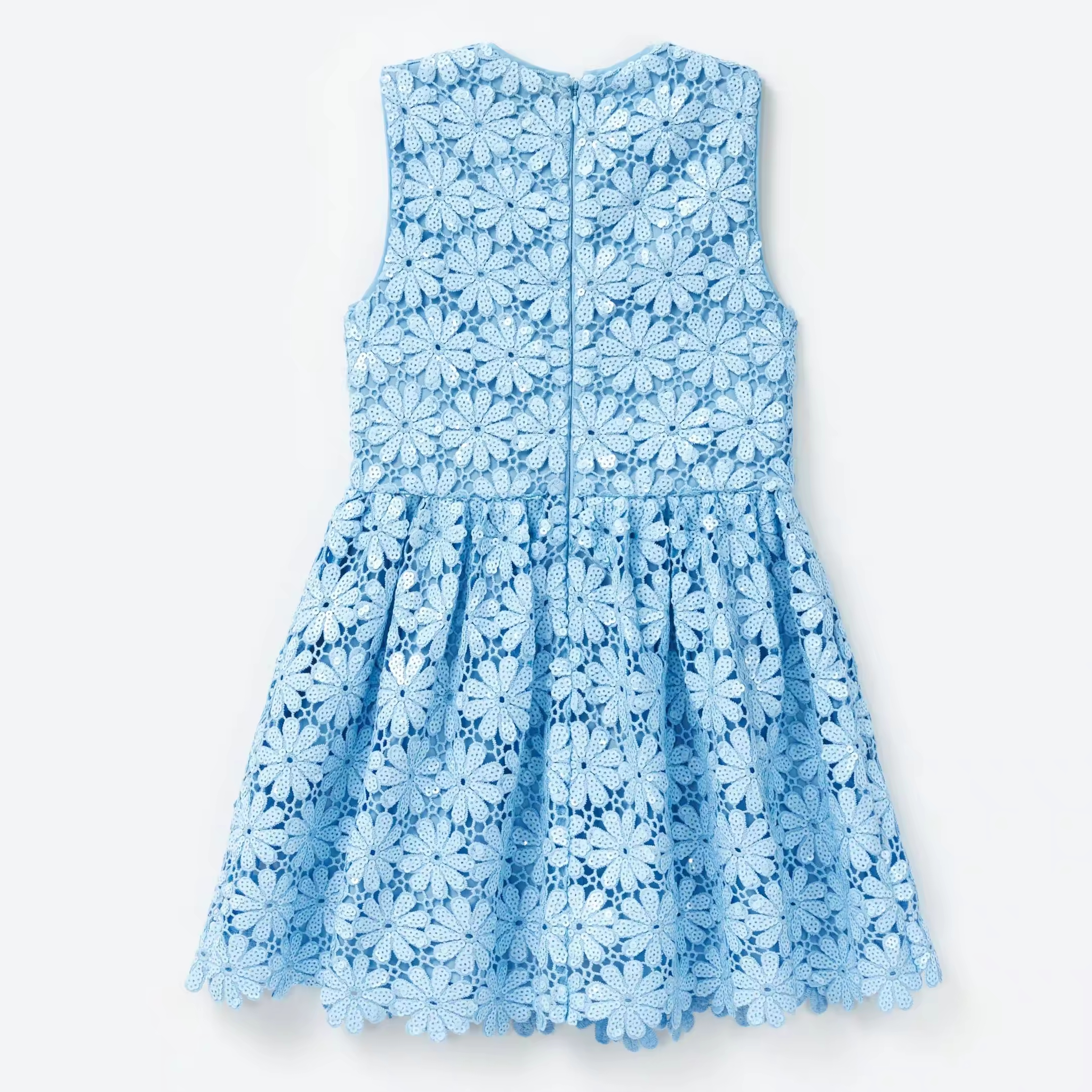 Custom Sequin Lace Embroidery Fabric Dress for Girls Aged 7 to 8 Years Old for Children's Day Celebrations