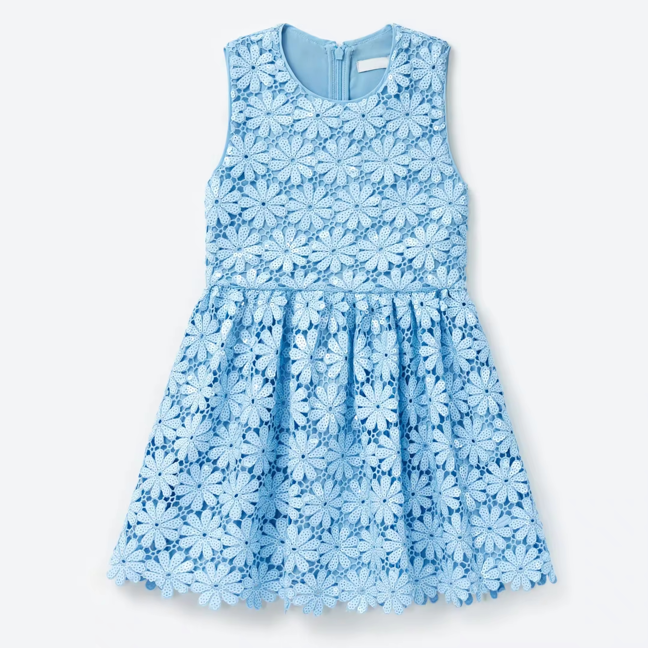 /Custom Sequin Lace Embroidery Fabric Dress for Girls Aged 7 to 8 Years Old for Children's Day Celebrations