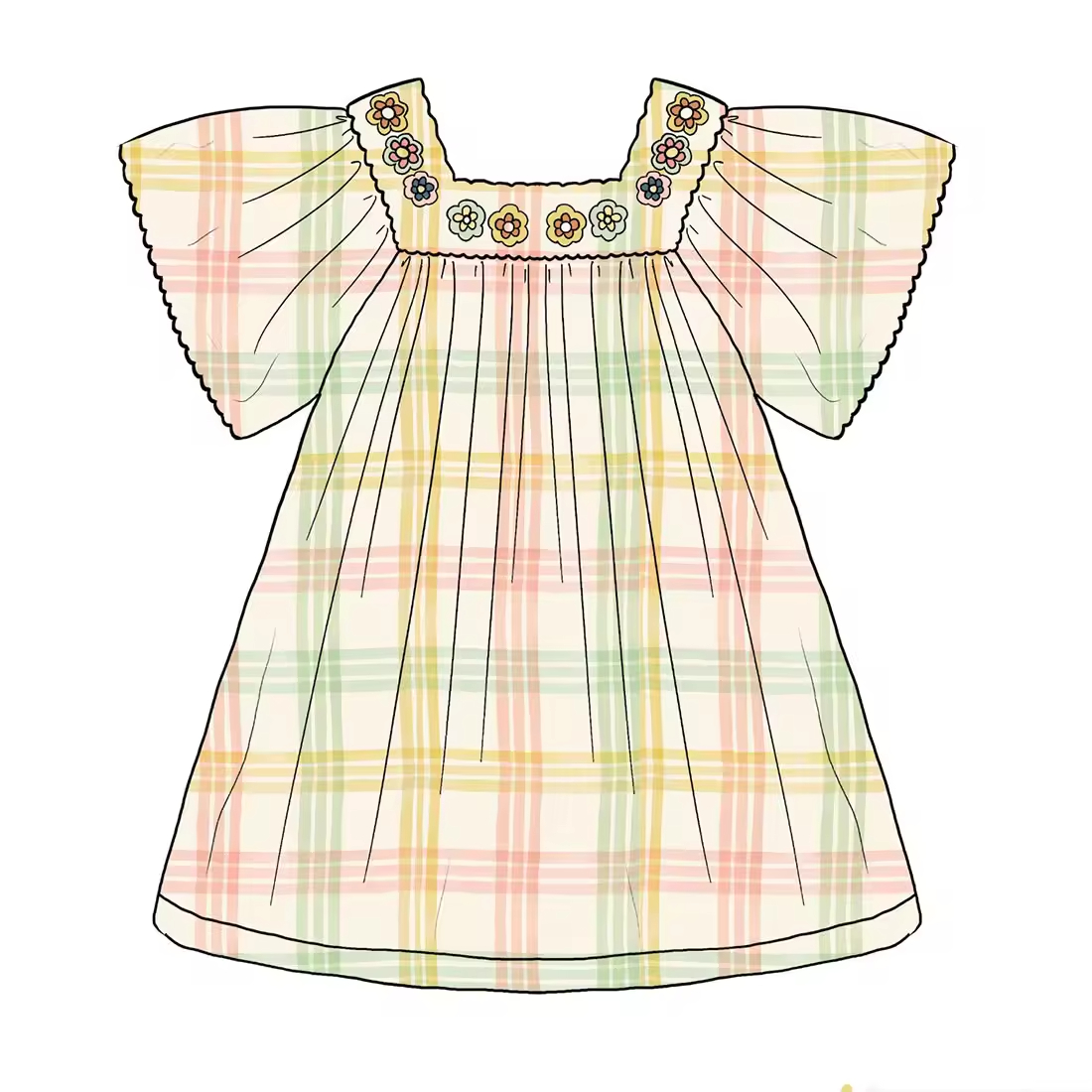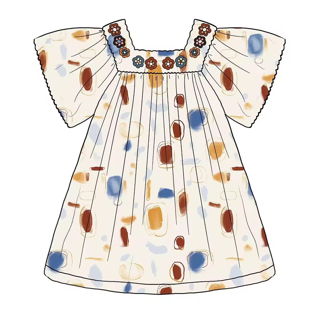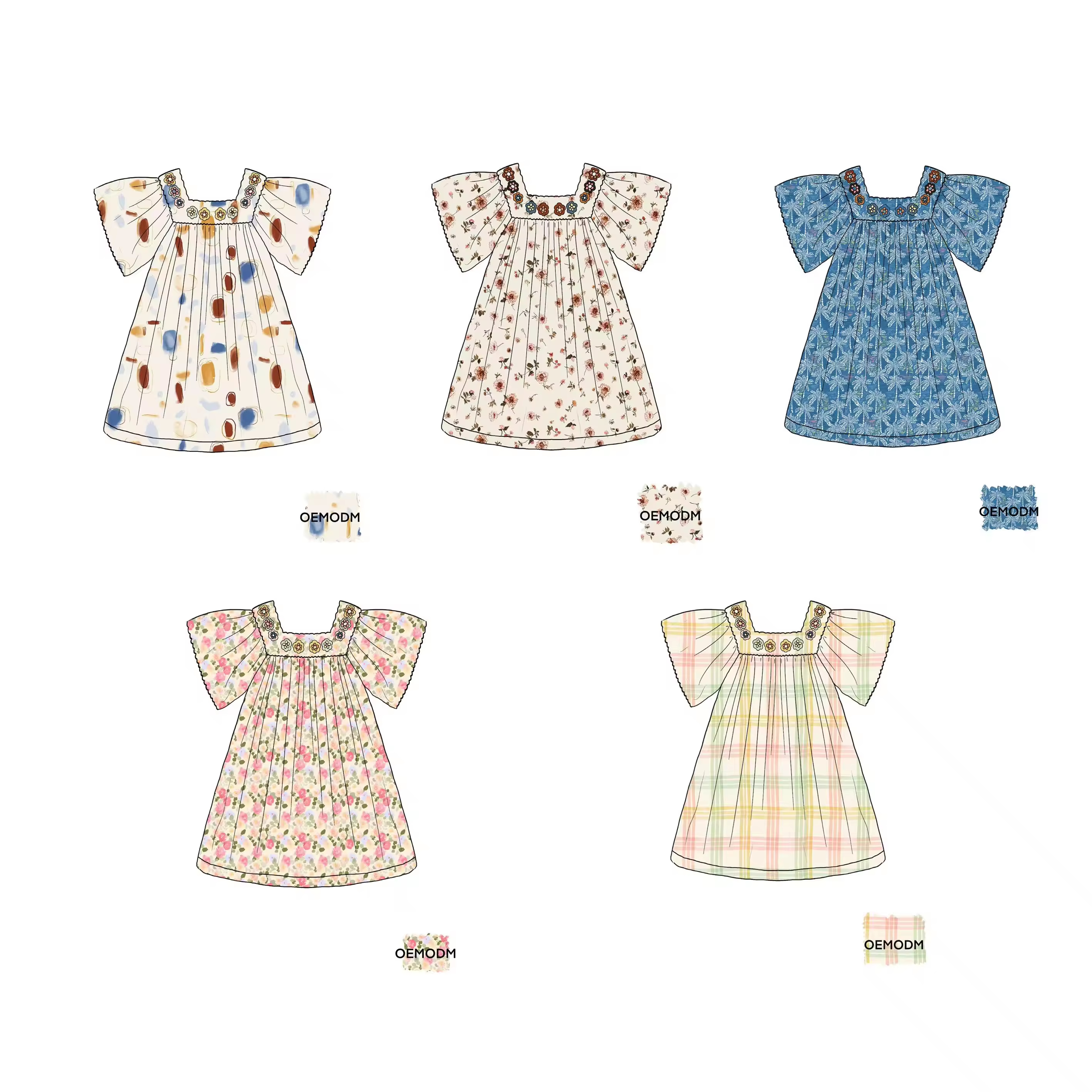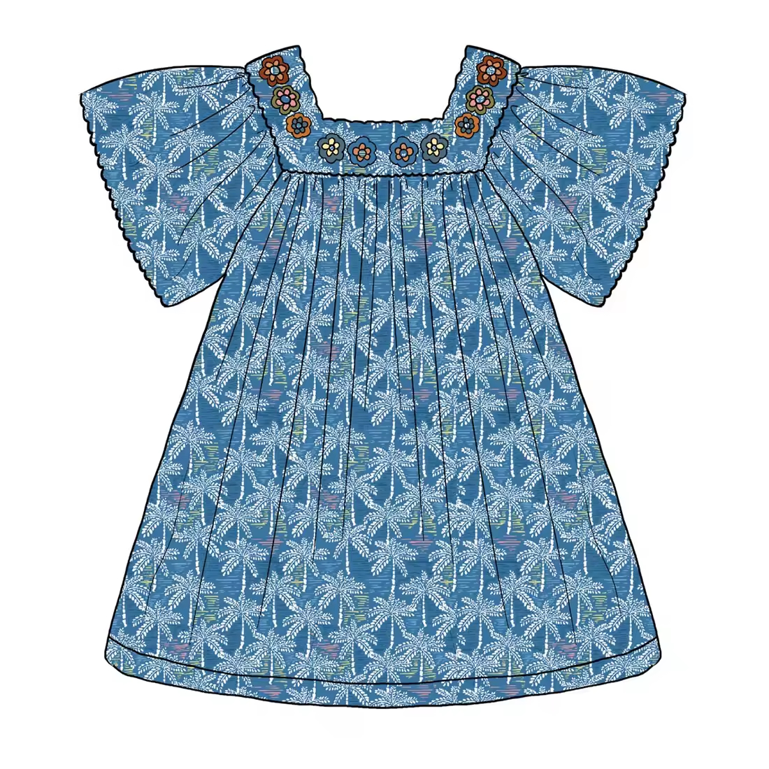 Custom Summer Cotton Embroidery Dresses for Toddlers Dusty Blue With Ruffle Sleeves Toddler Girls Clothing