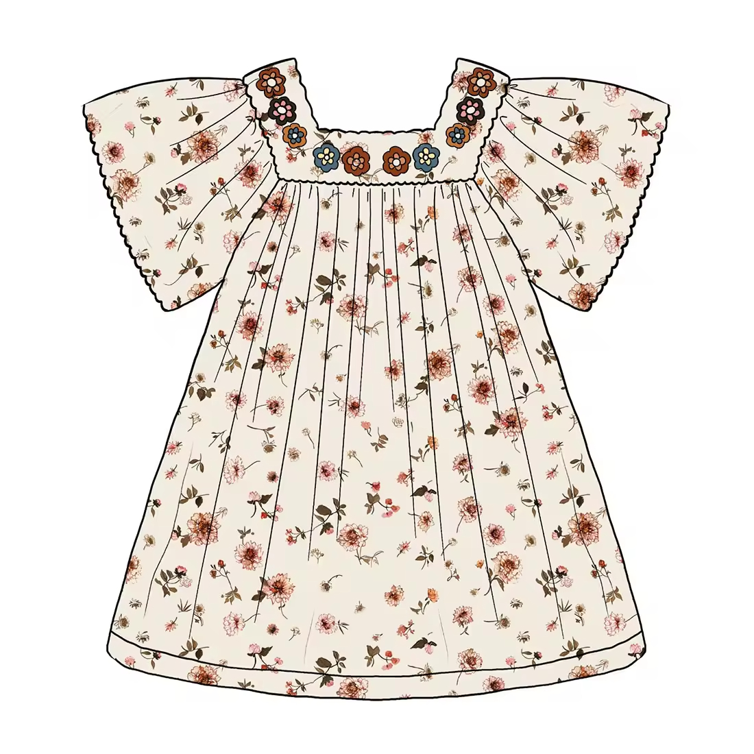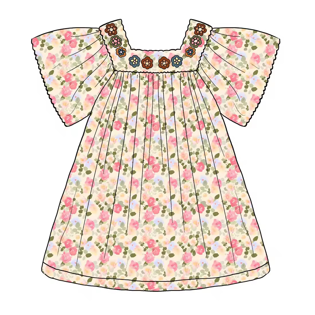 2025 New Design Baby Dress Lovely Summer Infant Baby Girl Ruffle Pink Floral Dress
