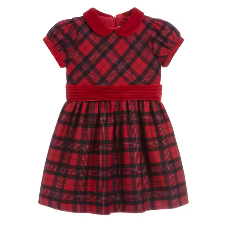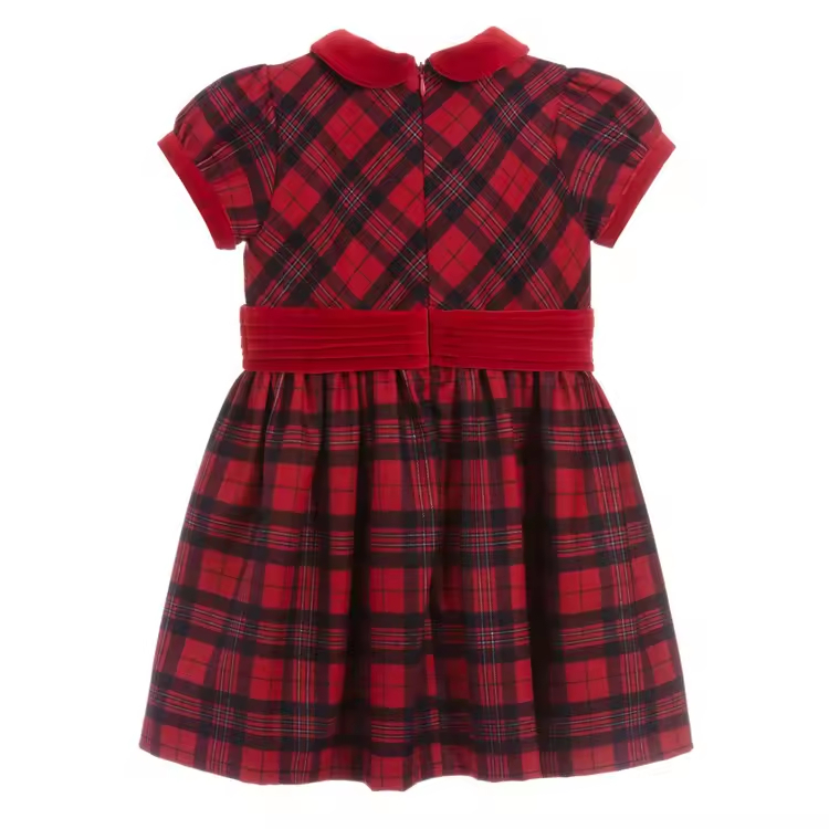 Red Color Thick Plaid Girl Christmas Dress Princess Party Dress for Girls 5 to 10 Years