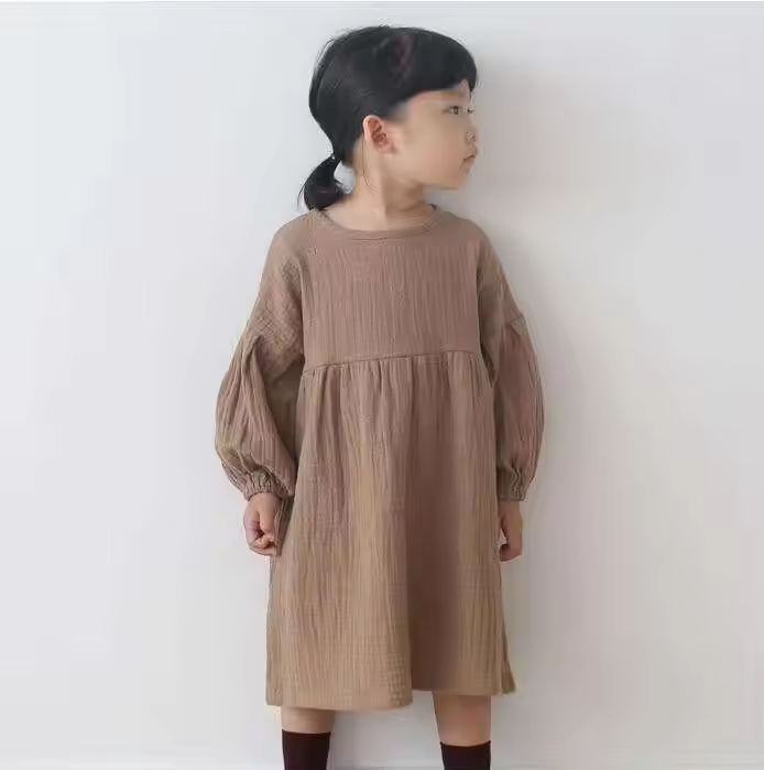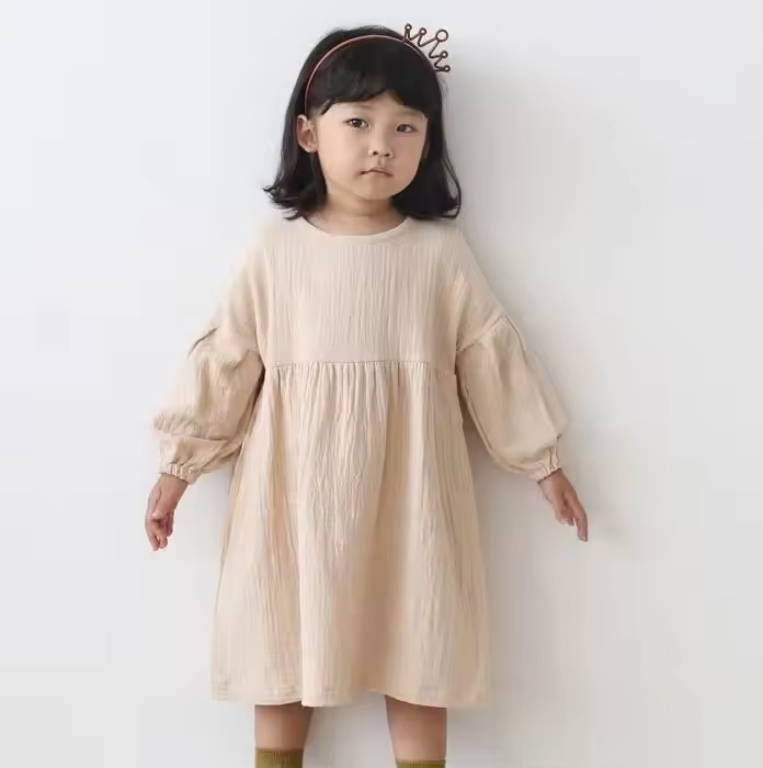 Guangzhou Factory Girl Dress Kids Organic Cotton Baby Clothes Linen Dress Long Sleeves Ruffle Girls Spring and Winter Dress