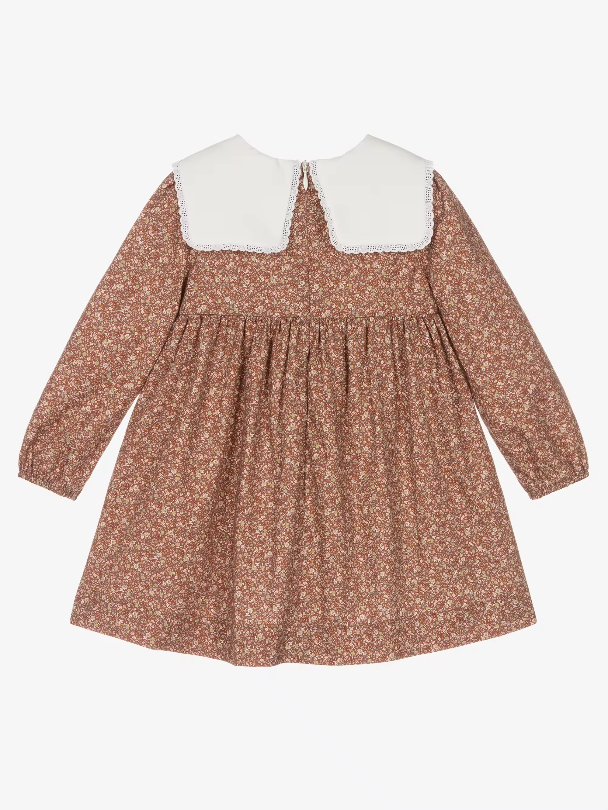 /Custom Autumn Floral Print Toddler Girl Child Dresses With Big White Collar Long Sleeve Kids Cotton Dresses Factory