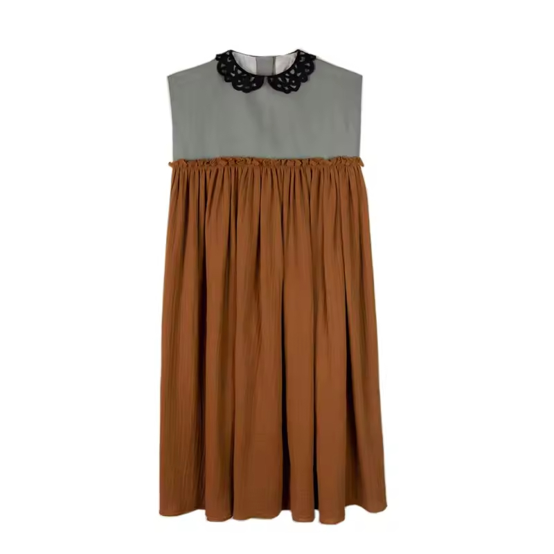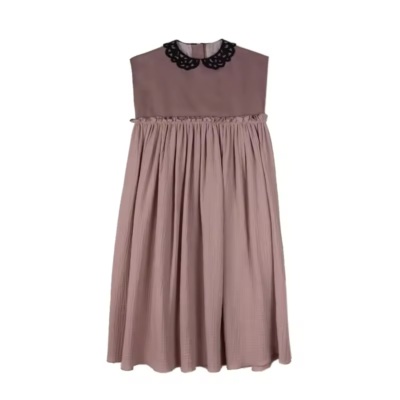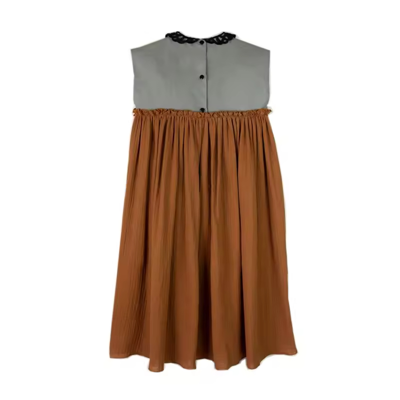 /Hot Selling Sleeveless Crochet Collar Design Girls Muslin Cotton Long Dress Filles Robes