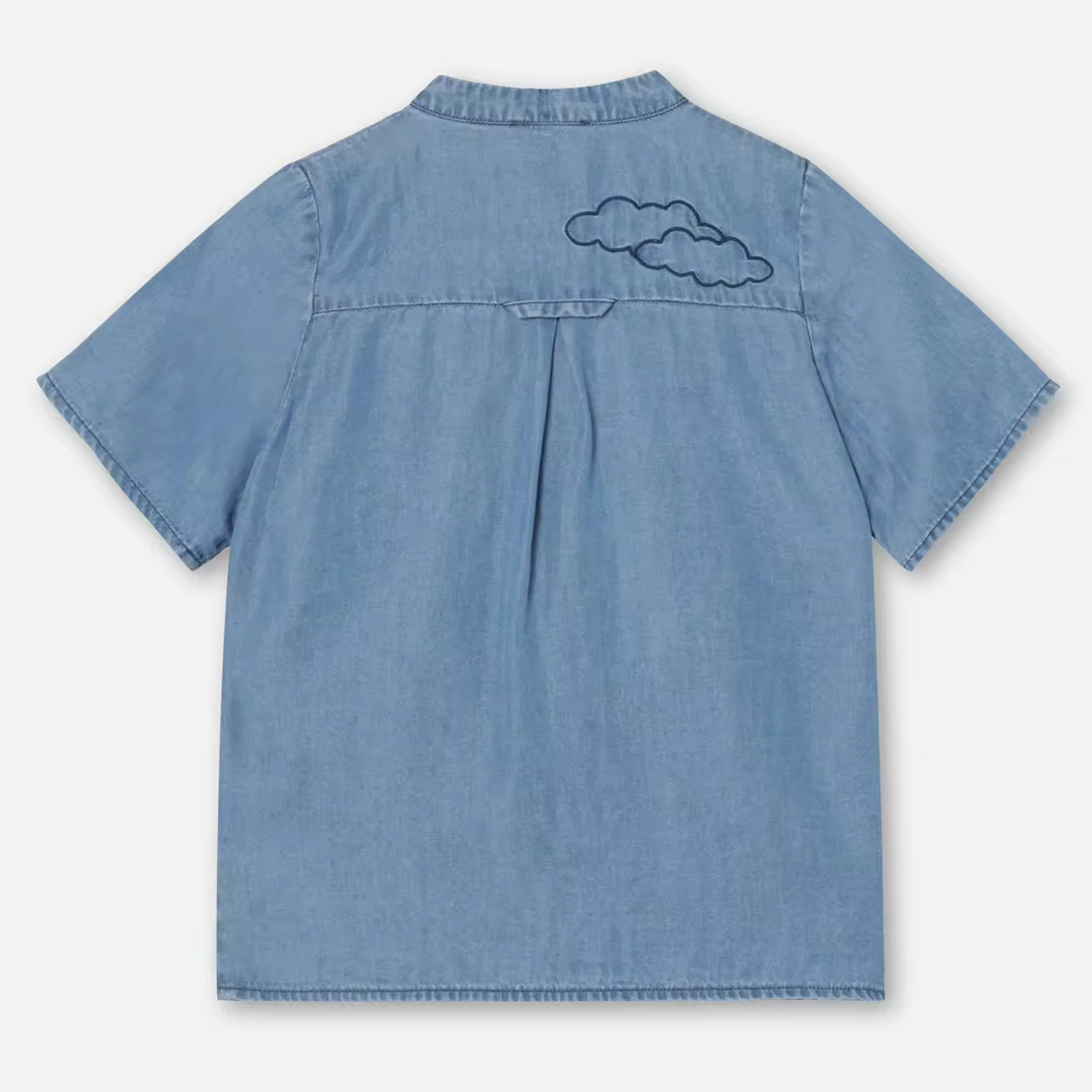Custom Light Blue Denim Shirt for Boys 2025 Embroidered Casual Short Sleeve Branded for Teenagers and Little Toddlers