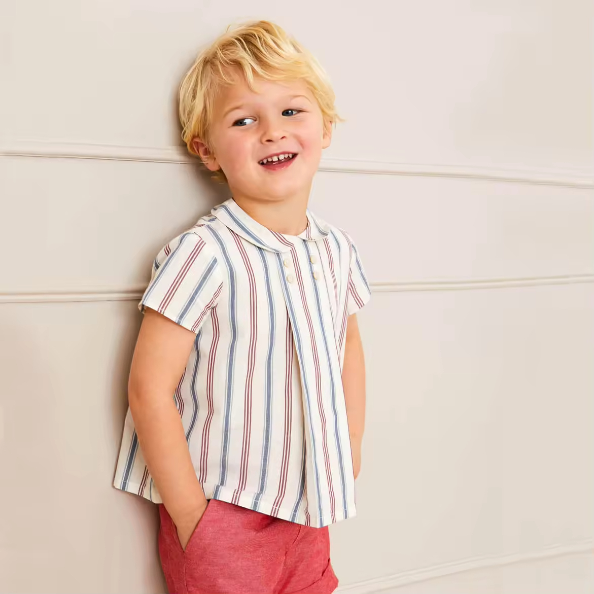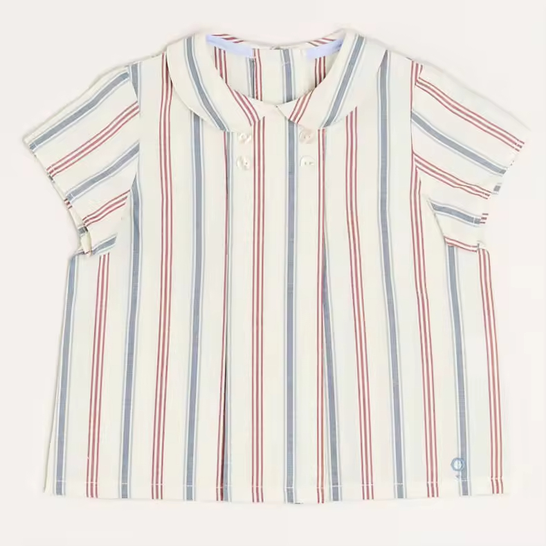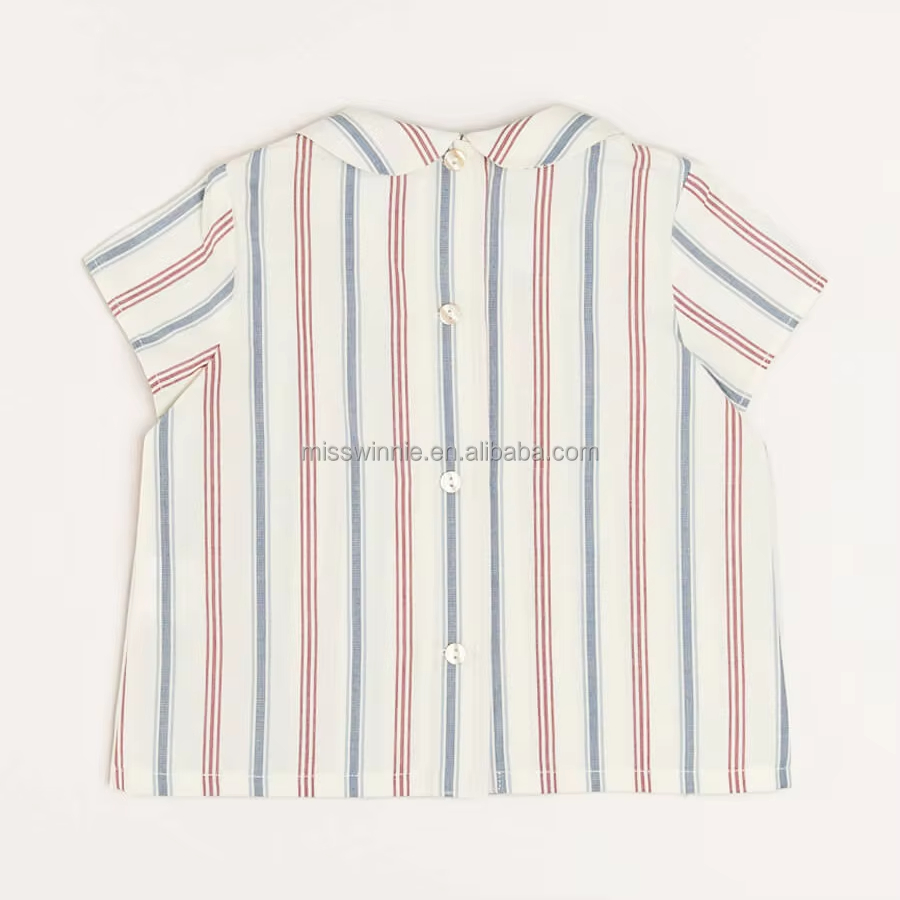 Guangzhou Private Label Peter Pan Collar Striped Shirts Branded Kids and Toddler Boys Shirts
