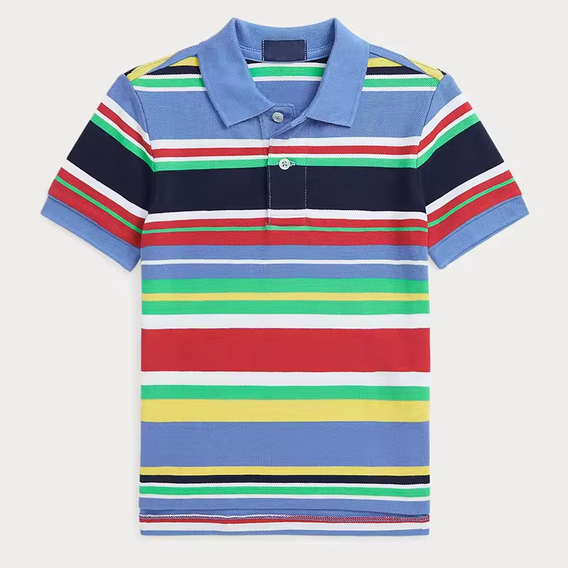 Hot Sale Summer Children's Clothing Stripe Lapel Cotton Tee Slim Fit Boys Short Sleeve Stripe Polo T Shirts for Kids