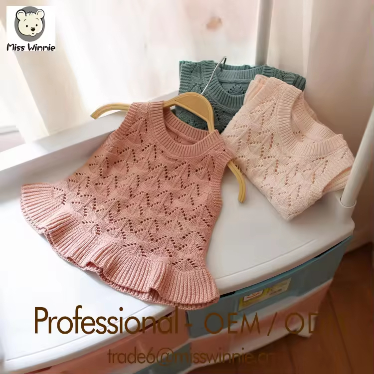 Guangzhou OEM Hot Fashion Solid Pattern Girls Knitted Dress Autumn Baby Clothes Customizable for Baby Girls