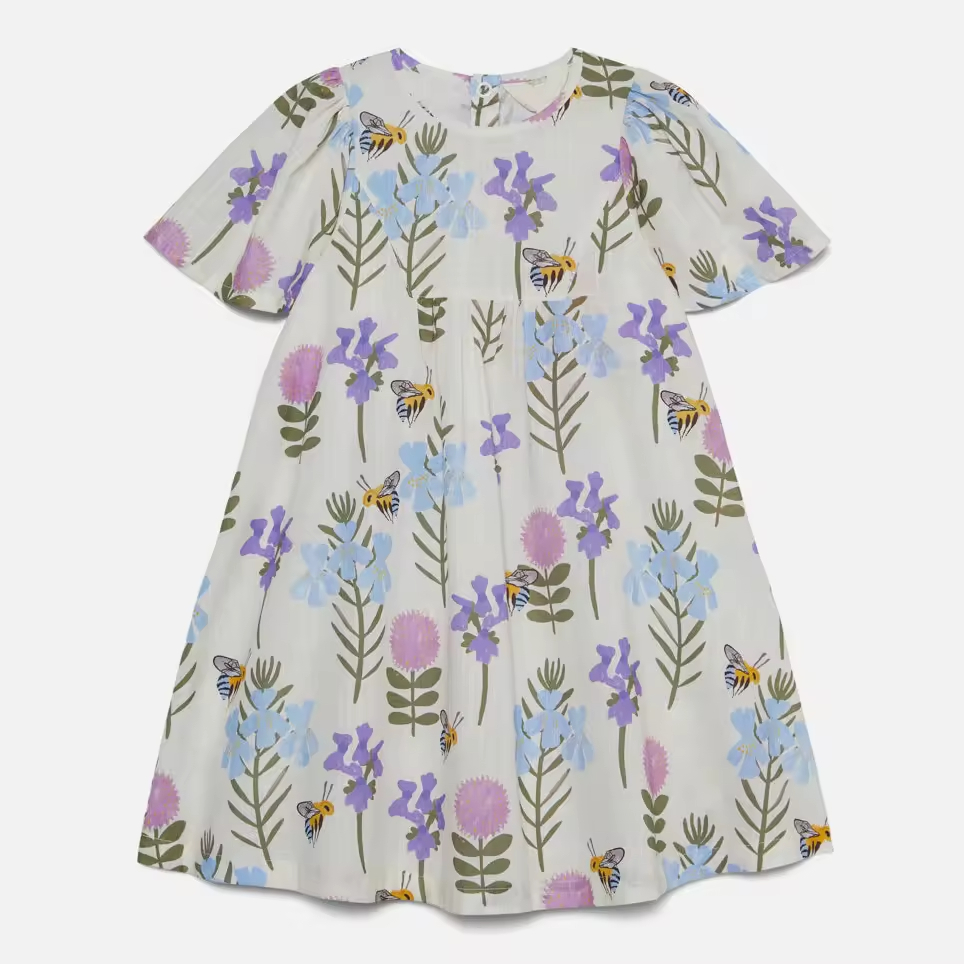 12-Year-Old Girl's Summer Dress Casual Children's Polyester/Cotton With Flare Sleeve Purple Floral Design ODM Supply