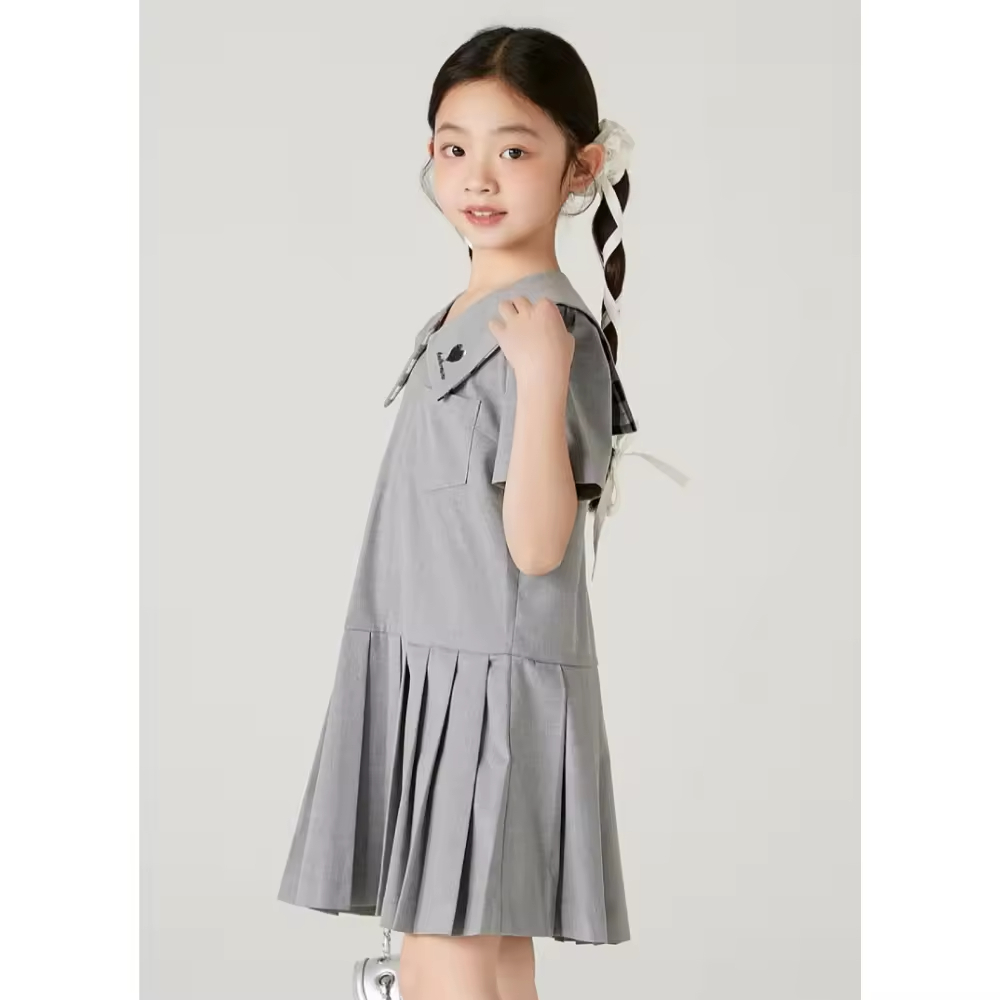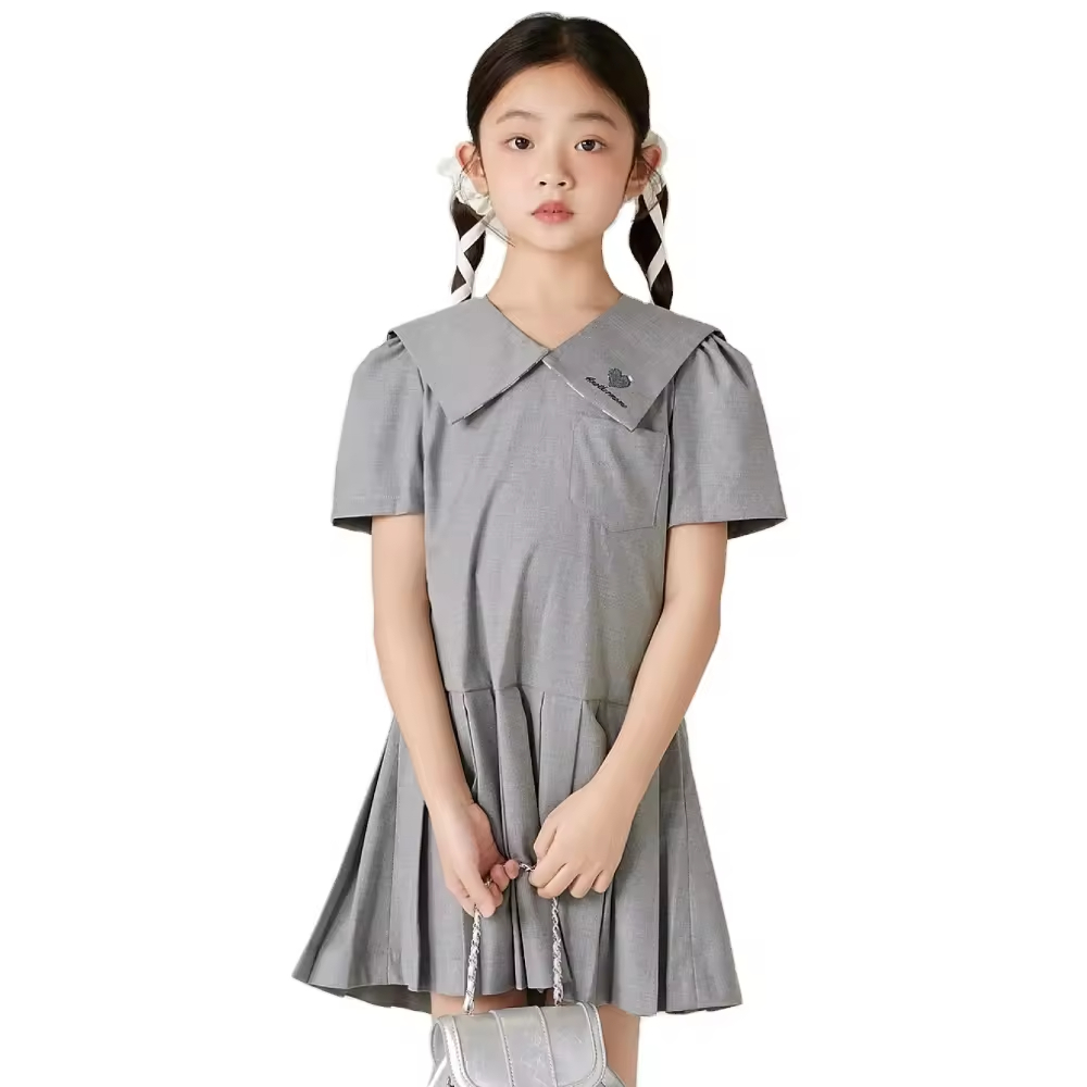 2024 Summer Girls Dress Elegant Western Style Preppy Look Floral Pattern Custom Sailor Collar ODM School Fashion for Children