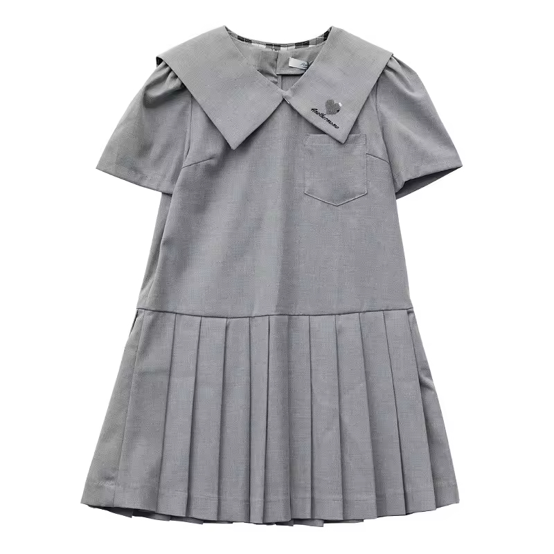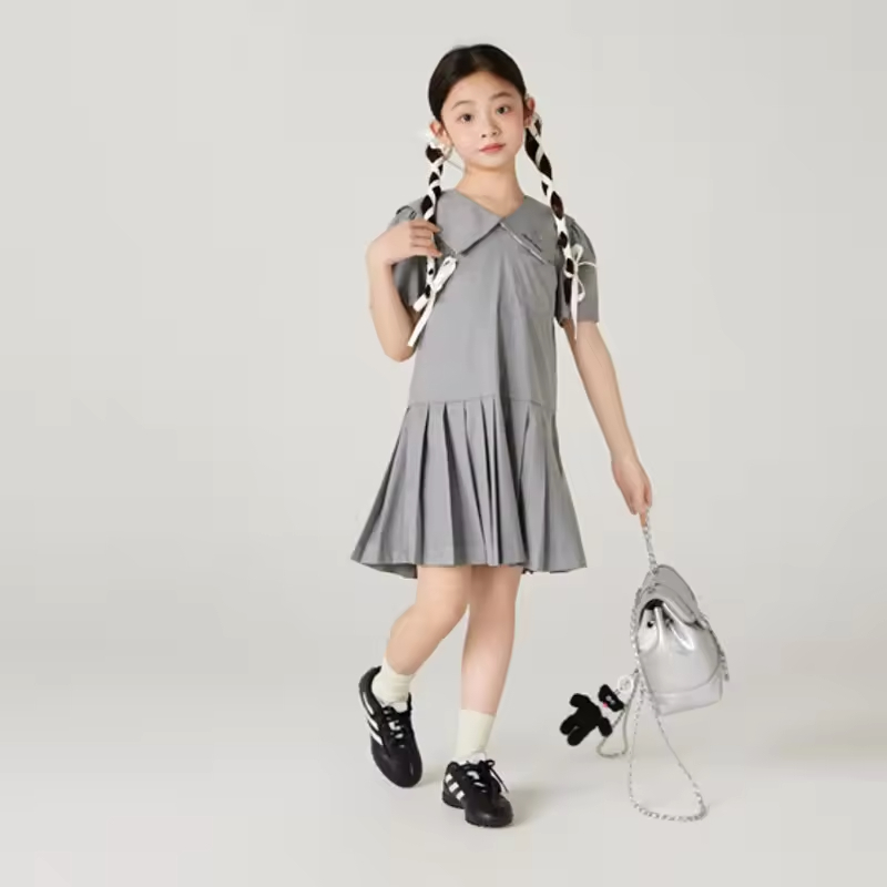 OEM & ODM High Quality Solid Cotton Pleated Dress Girl Children Clothes
