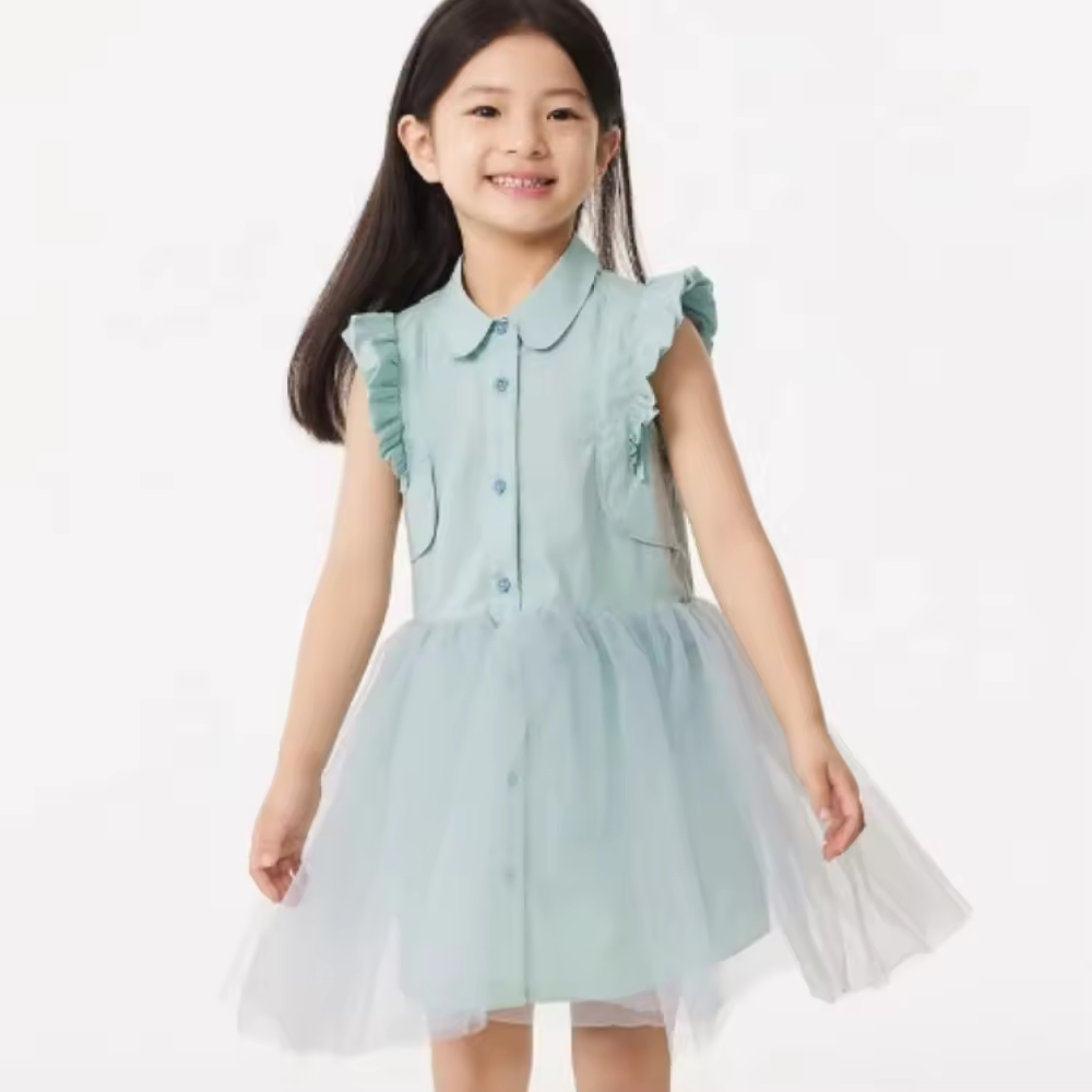 Customized Children's Summer Sleeveless Party Dress With Ruffles Hem Design for Evening Events