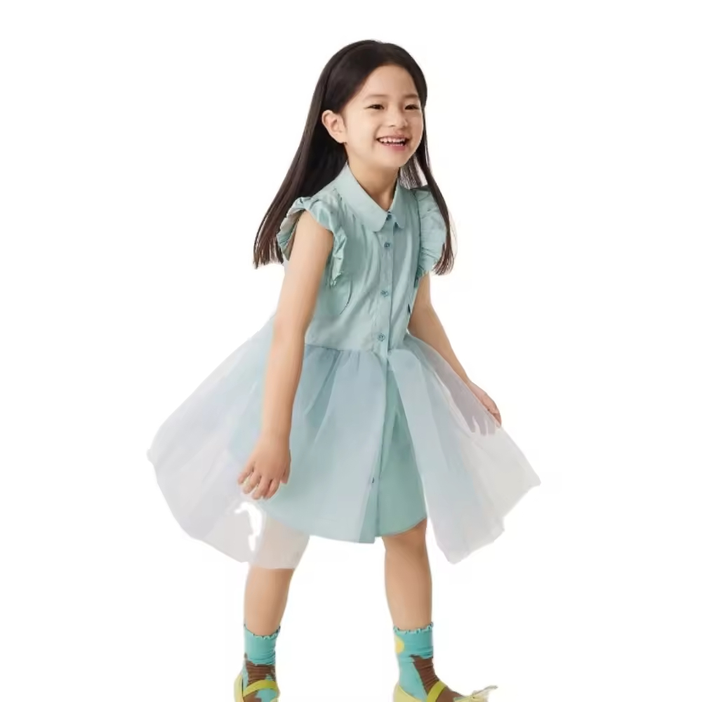 OEM & ODM High Quality Solid Cotton Pleated Dress Girl Children Clothes