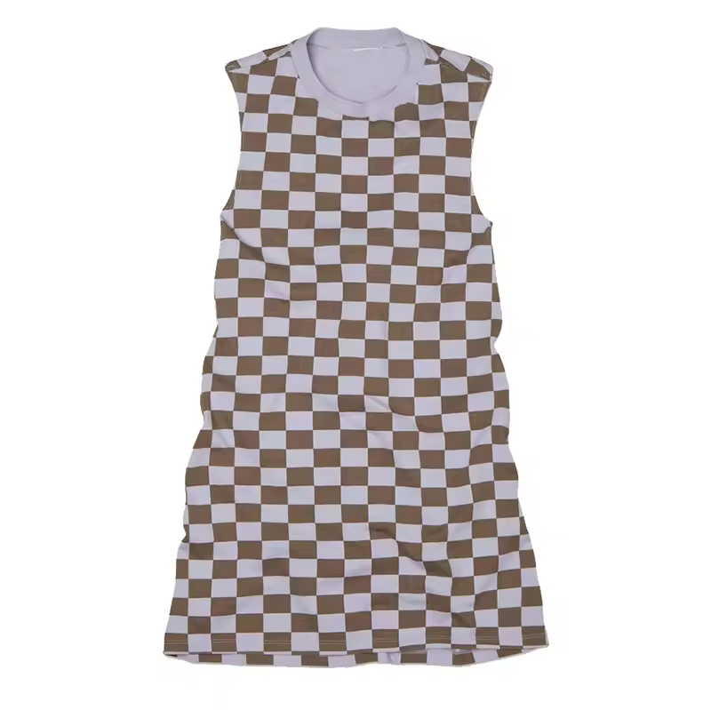 Custom Made Girls Cotton Summer Dress Latest Fashion Checkered Sleeveless for Kids ODM Supply
