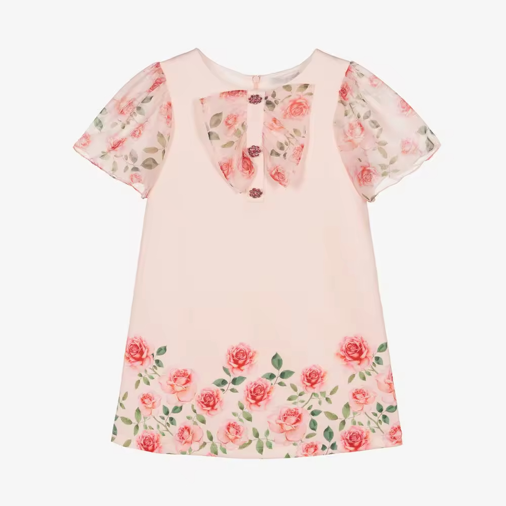 Custom Brand Rose Print Dress for Children Lovely Summer Casual Formal Dress for Babies and Toddlers Age 45 Years