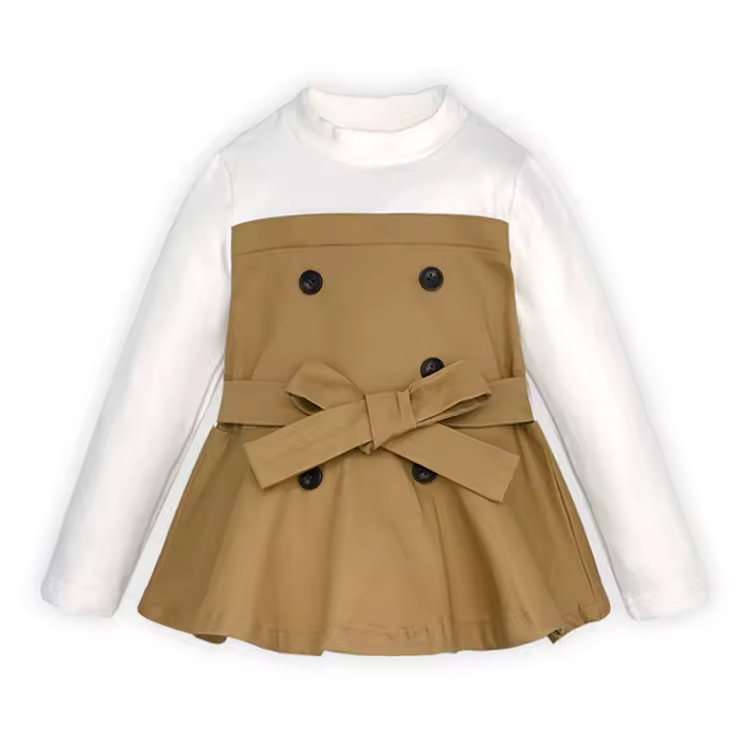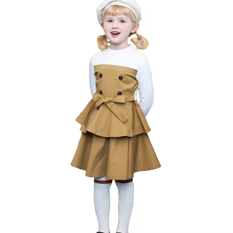 OEM & ODM High Quality Solid Cotton Pleated Dress Girl Children Clothes