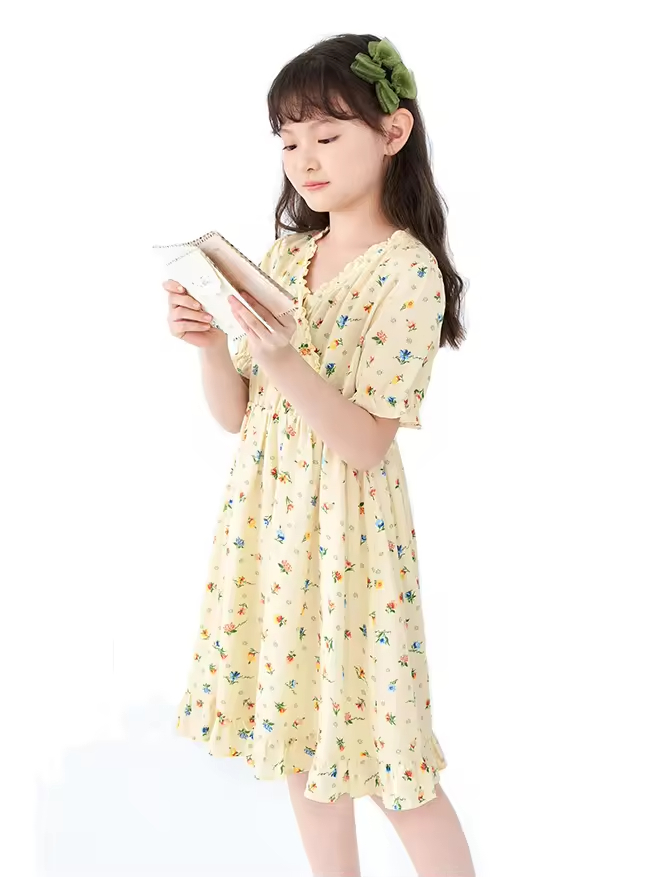 /Latest Summer Casual Short Sleeve Kids Cotton Dresses for Girls With Ruffles Decoration for 10 Year Old Teens