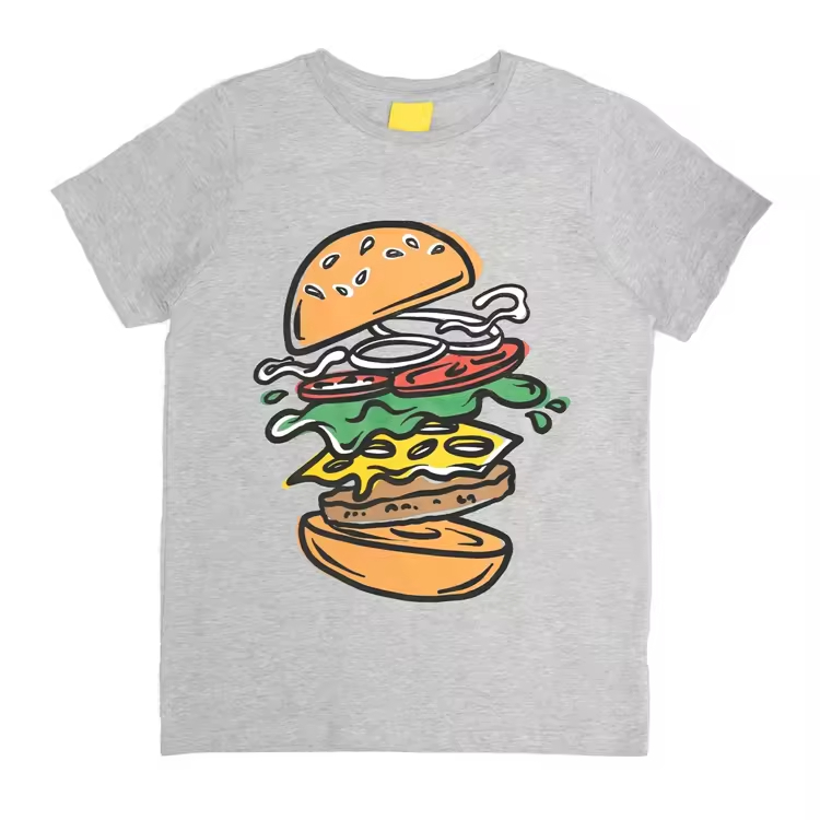Latest Fashion Guangzhou Wholesale Price Custom Hamburger Printing Kids Shirt Summer Short Sleeve Cotton Boy's T-shirts