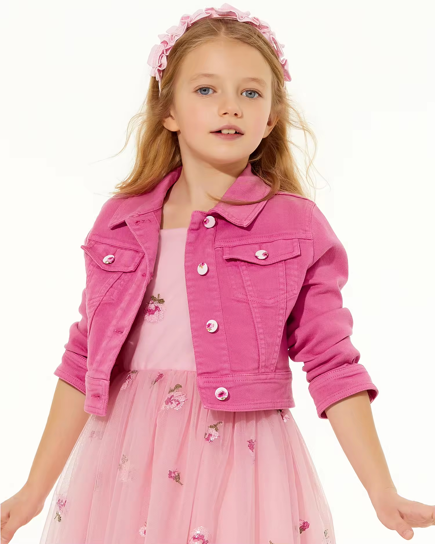 /Kids Denim Jacket Pink Pants Matching Set For Girls Boutique Clothing Custom