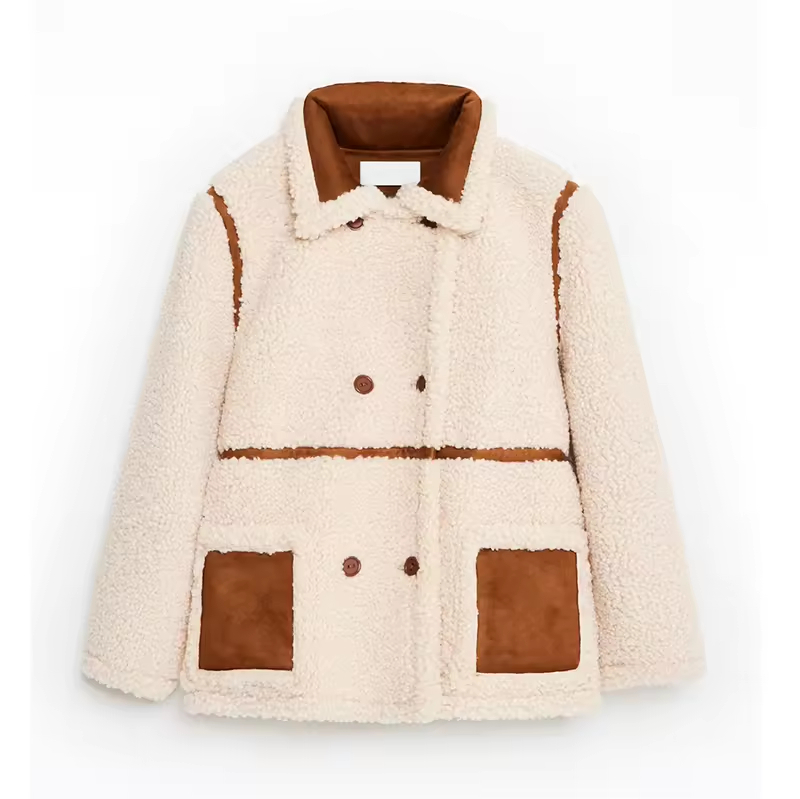 2025 Custom Fashion Sherpa Jackets Outerwear Double-breasted Coat Suede Warm Kids Coat Winter Girl