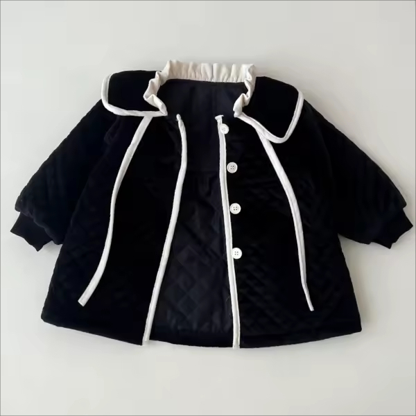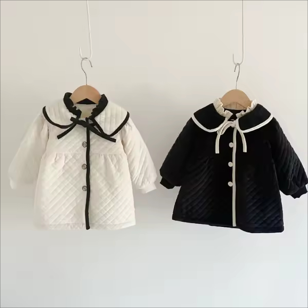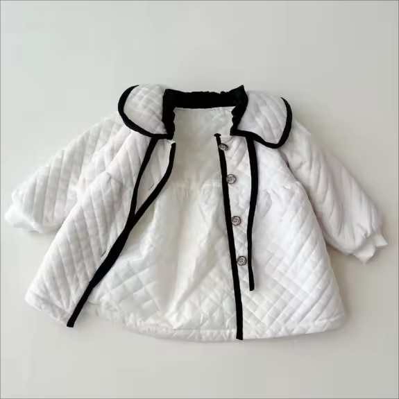 Autumn Winter OEM Quilted Jacket for Girls Vintage Style Windproof Children's Clothing for Babies and Toddlers