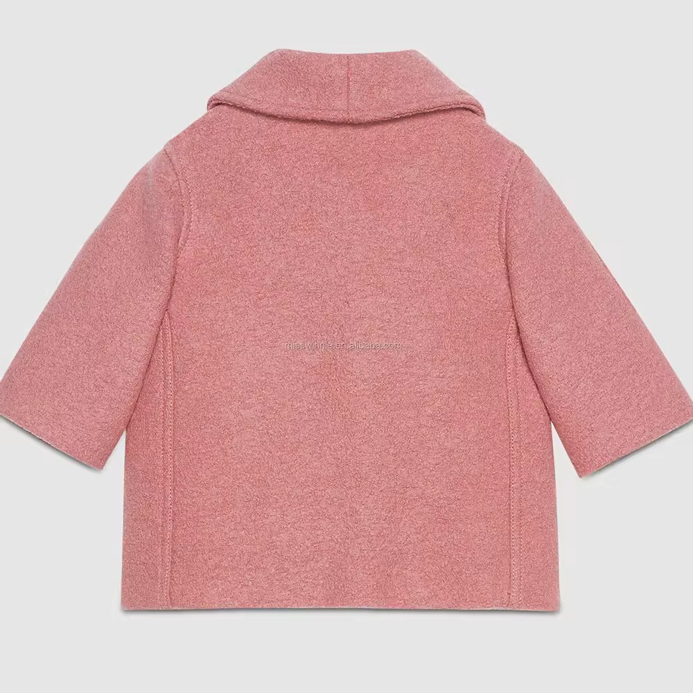 Customized Private Label Brand Wool Kids Winter Coat Girl Coats With Embroidery on Collar